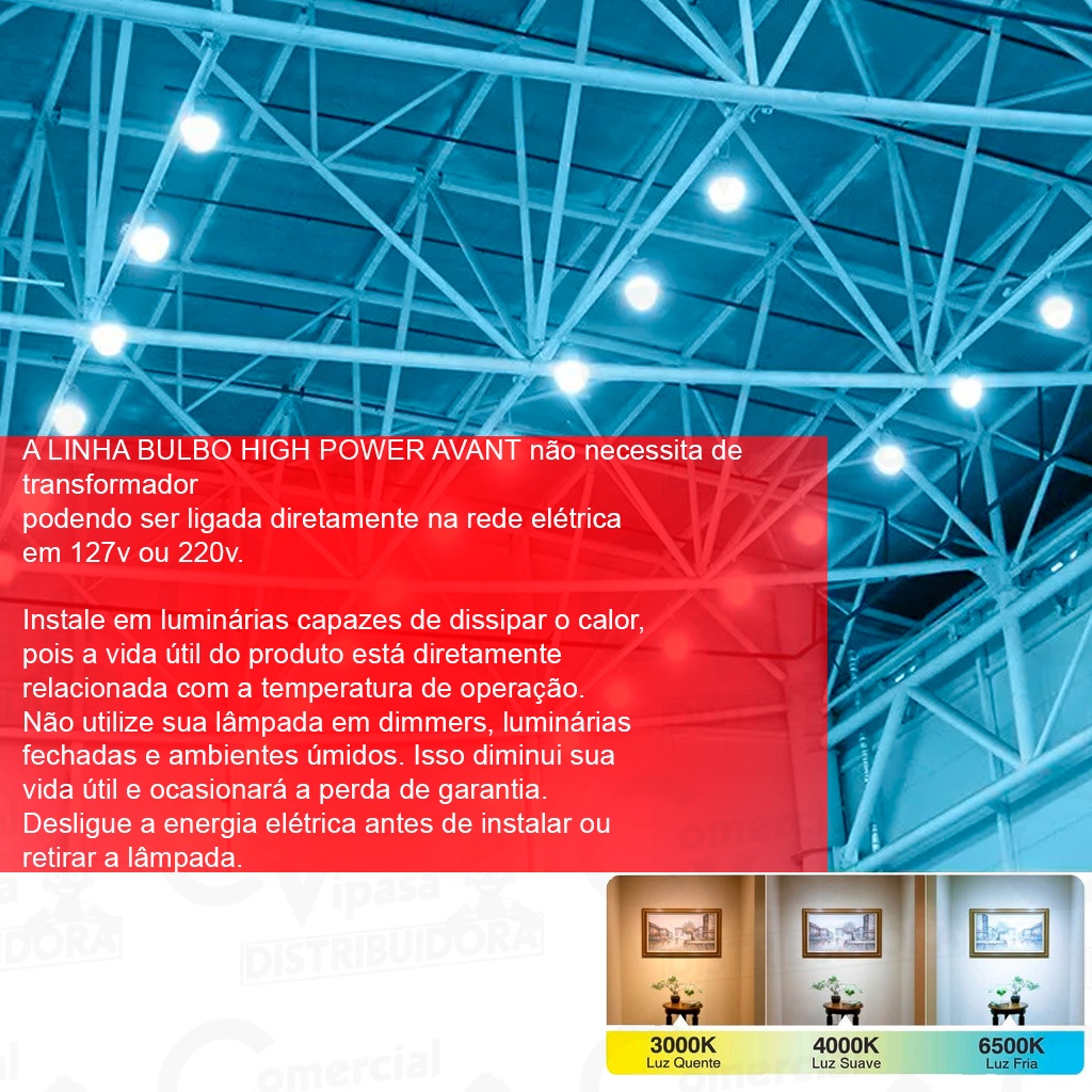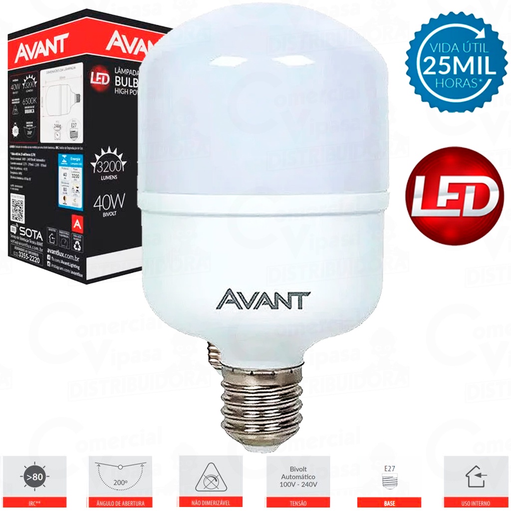 Lâmpada De Led Luz Branca Grande 40W E27 6500K Para Iluminação Casa Comércio Claridade AVANT
