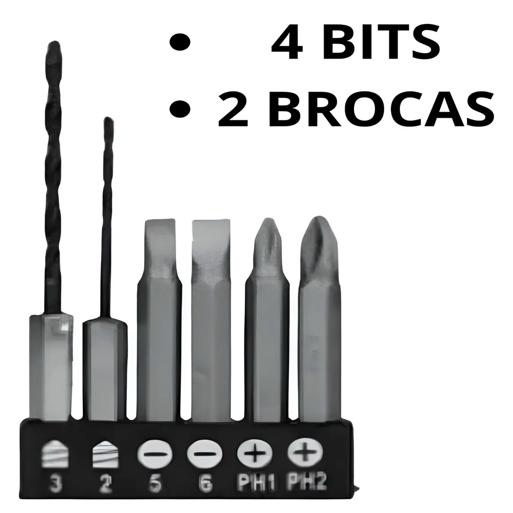Mini Parafusadeira 4.8V A Bateria Com Bits Fenda Philips Broca Carregador Bivolt Portátil Compacto
