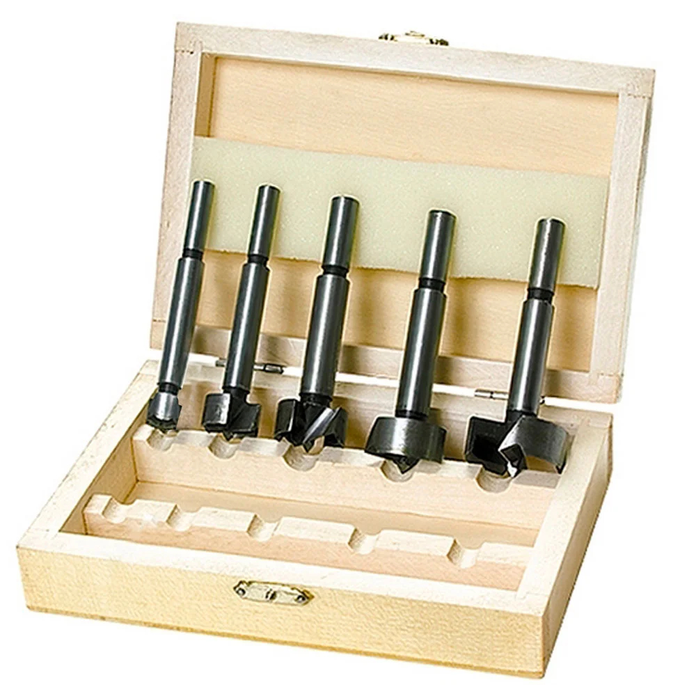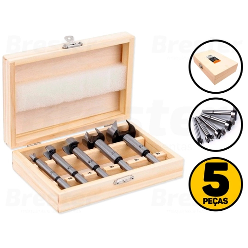 Kit Jogo 5 Brocas Fresas Forstner 10 - 35mm Para MDF Madeira Dobradiça Porta De Móveis Planejados