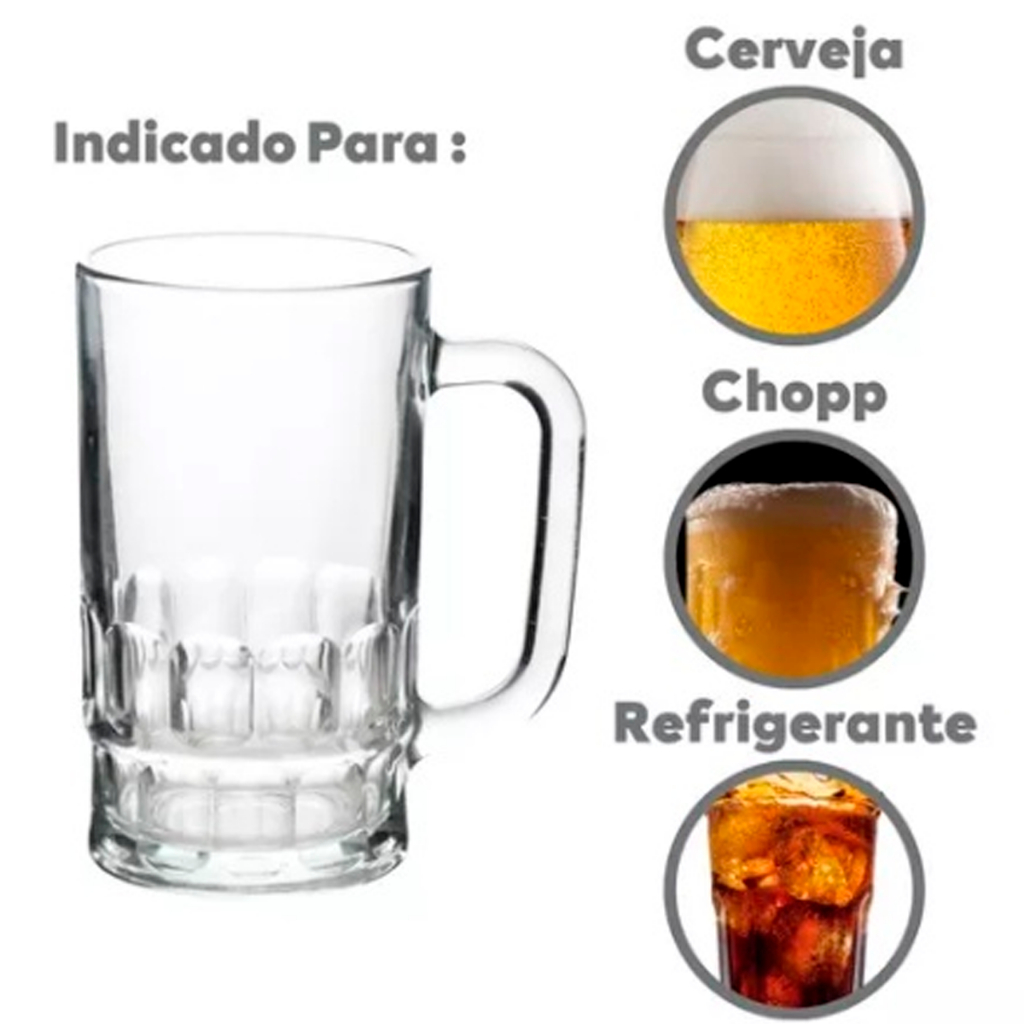 Caneca De Vidro 360ml Chopp Resistente Ideal Para Bar Eventos Restaurante - Hauskraft