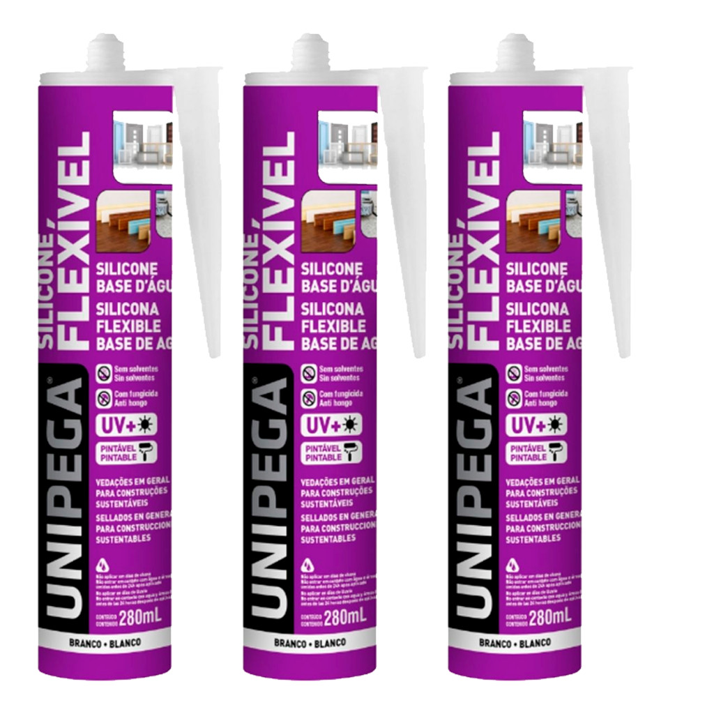Kit 3 Adesivo Silicone Base Água Branco Cartucho 280ml Vedação Interna Selante Alvenaria Madeira