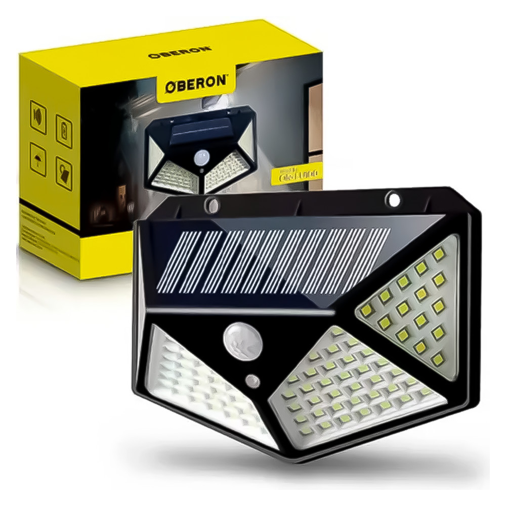 2 Luminárias Solar 100 Leds Com Sensor Movimento Prova D'Água Refletor Parede Luz Para Jardim