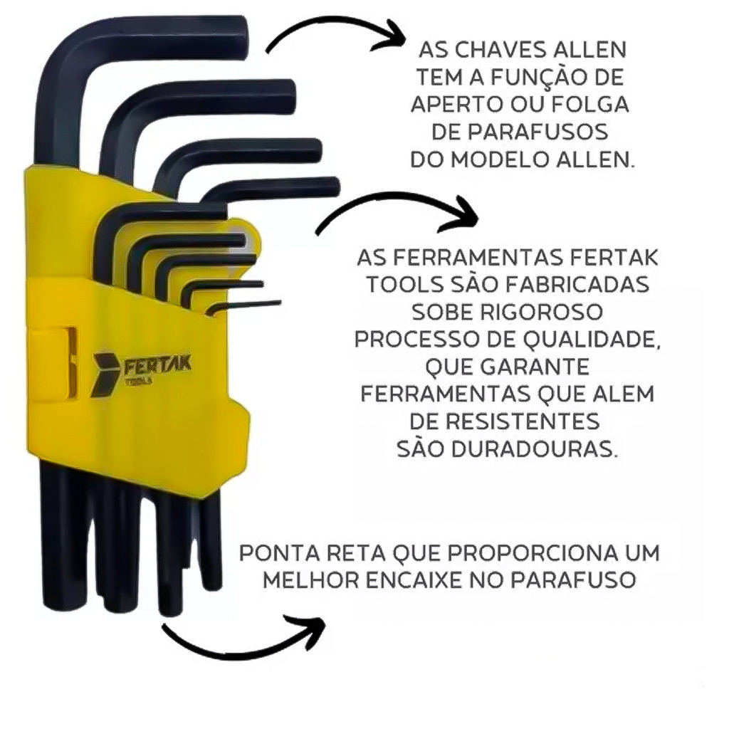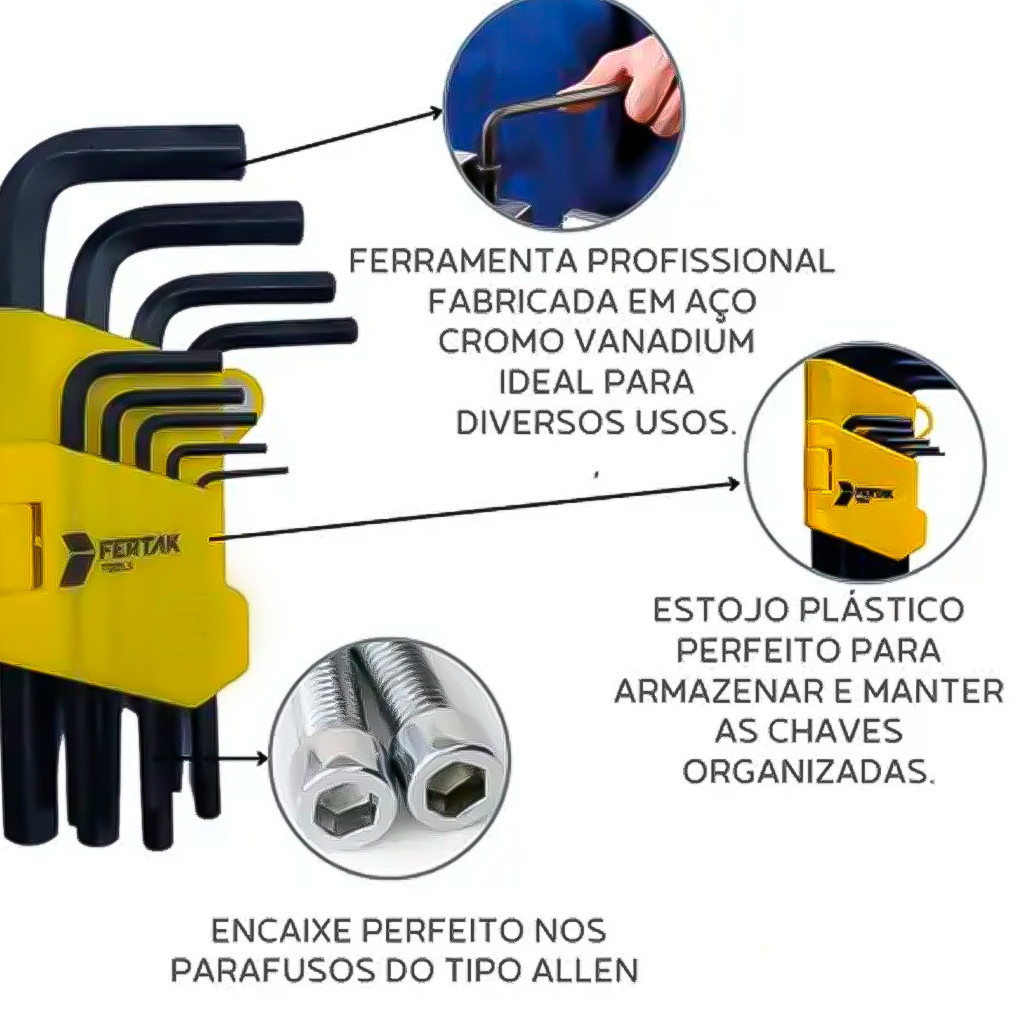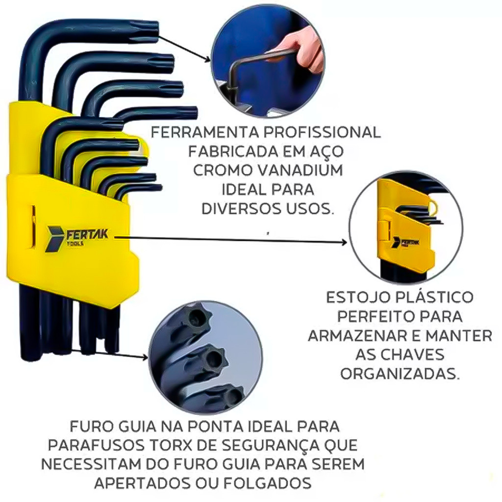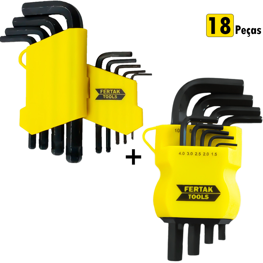 Kit Jogo 18 Peças De Chave Allen Sextavada E Torx Curta Com Furo Cr-V Tipo L Profissional