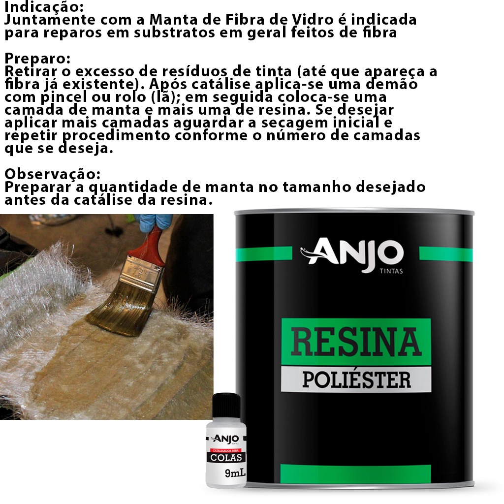 Resina De Fibra Vidro Poliéster 990g Classe 3 Anjo + Catalisador Para Moldes Laminação Manta Top