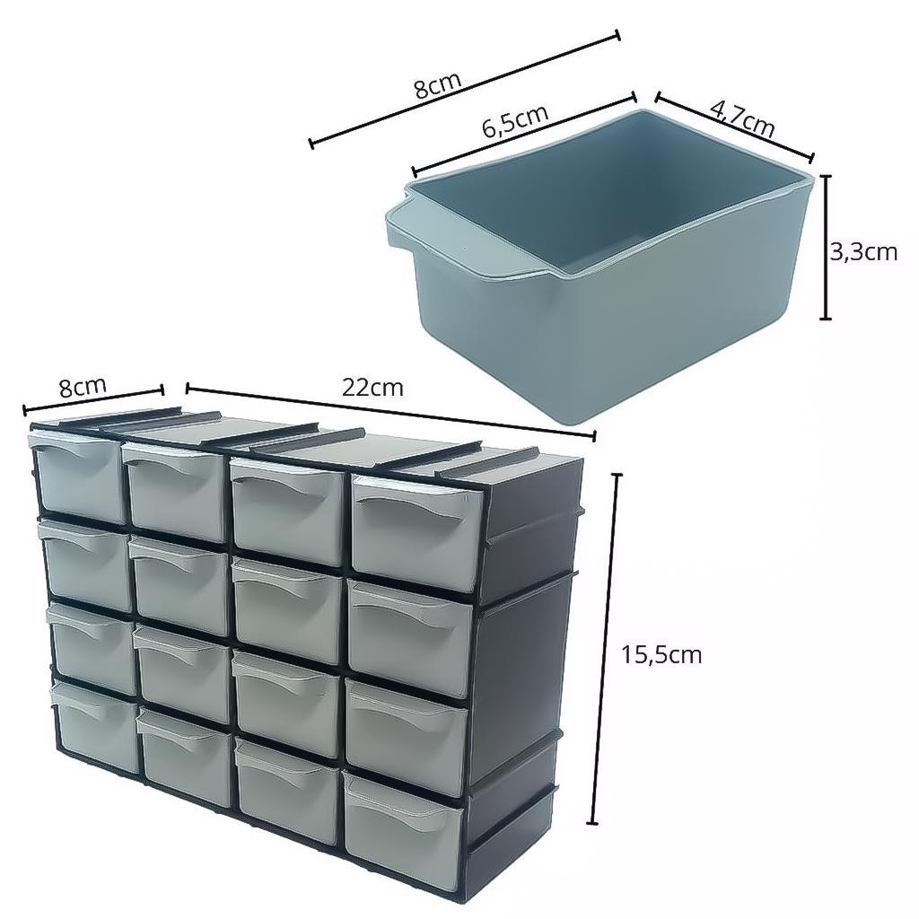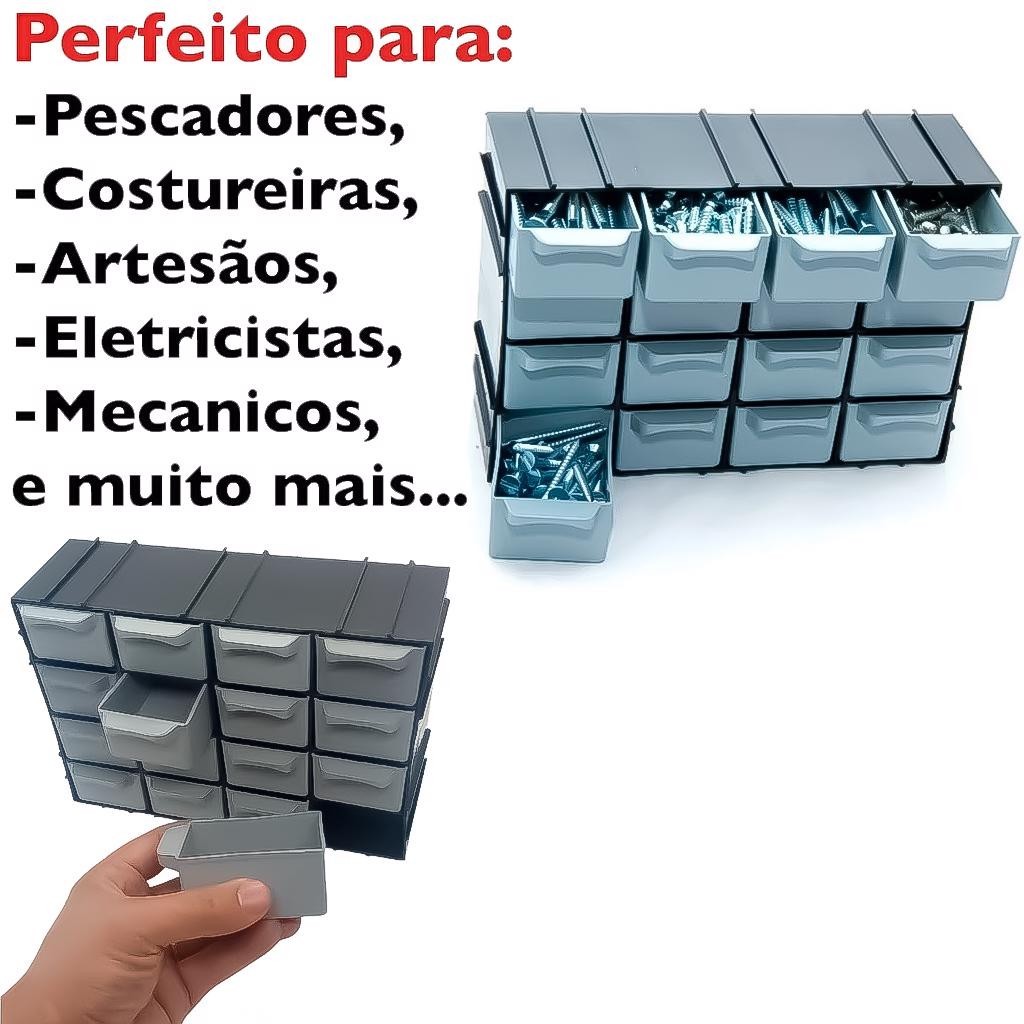 Organizador Gaveteiro Plástico 7001 Modular 16 Gavetas Multiuso Pregos Parafusos Porcas Pesca