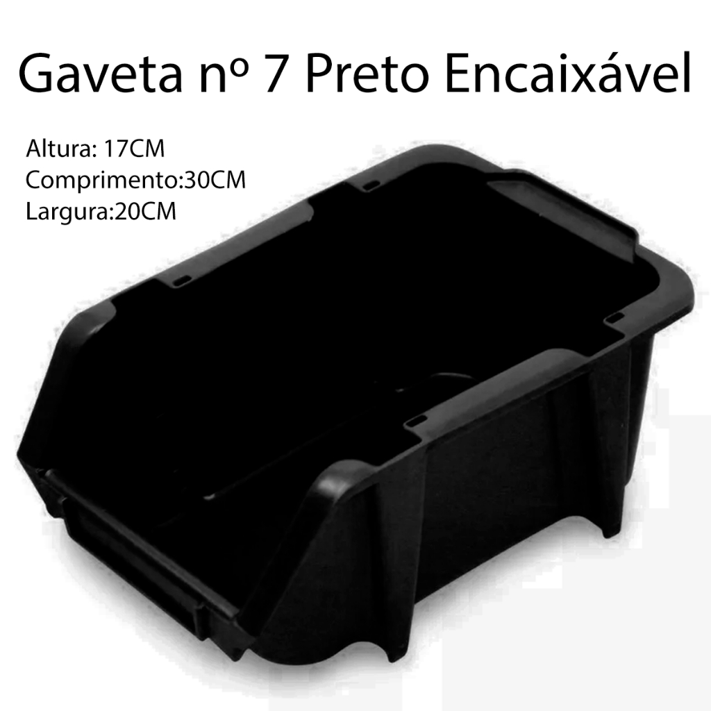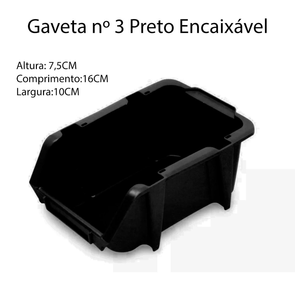 Gaveta Caixa Plástica Organizadora Encaixável Preta Vários Tamanhos Alta Durabilidade