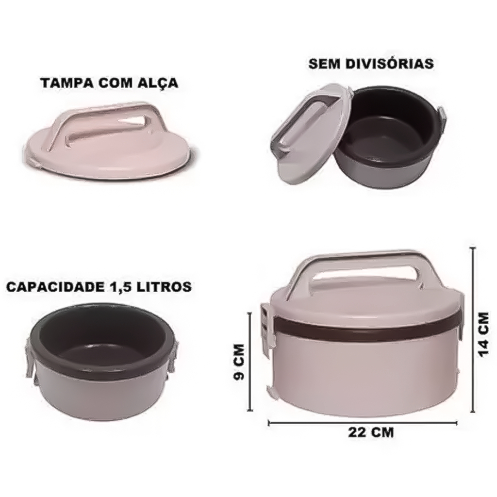 Marmita Com Alça Presilhas Plástico Tekcor 1,5L Sem Divisórias Cinza Claro - SOPRANO Original