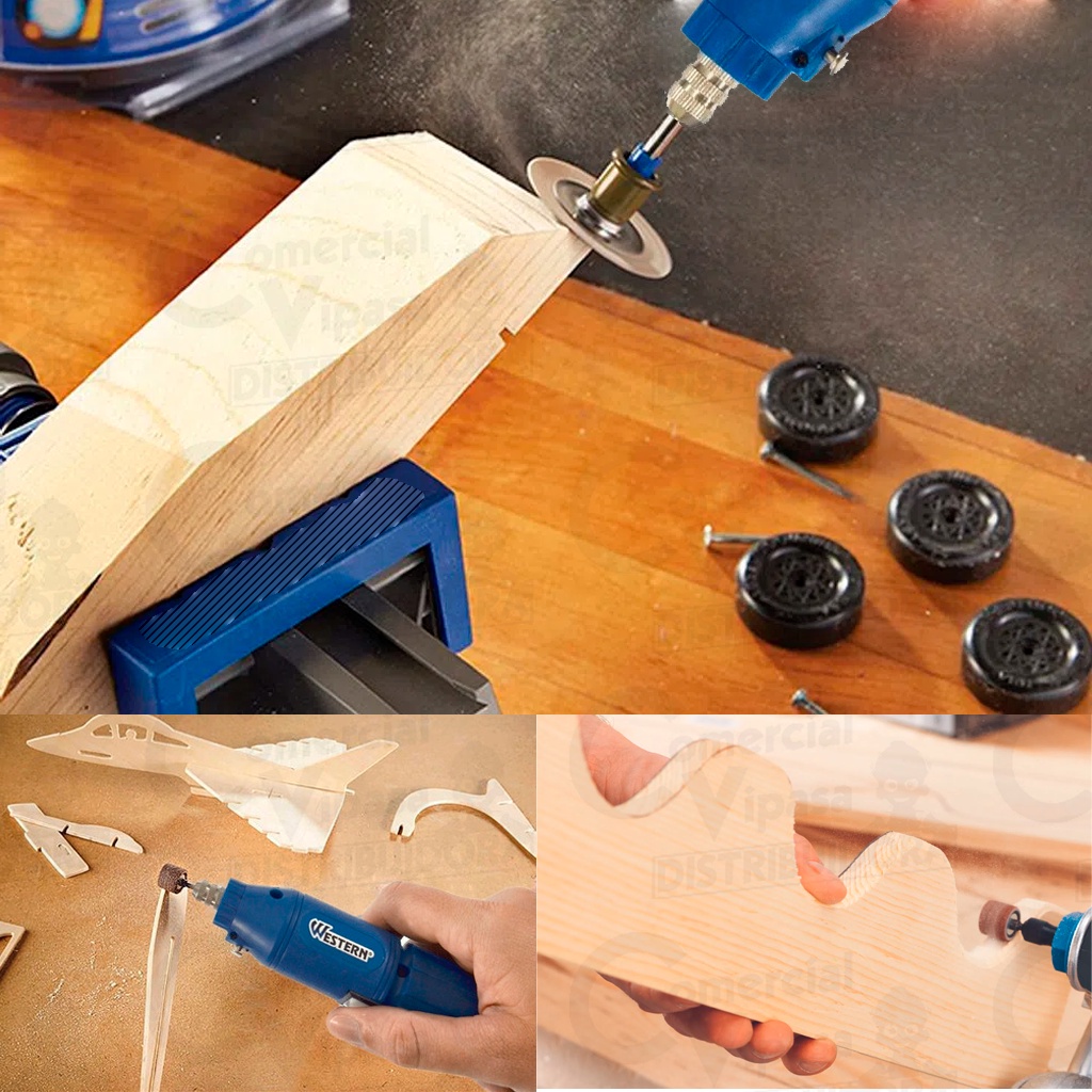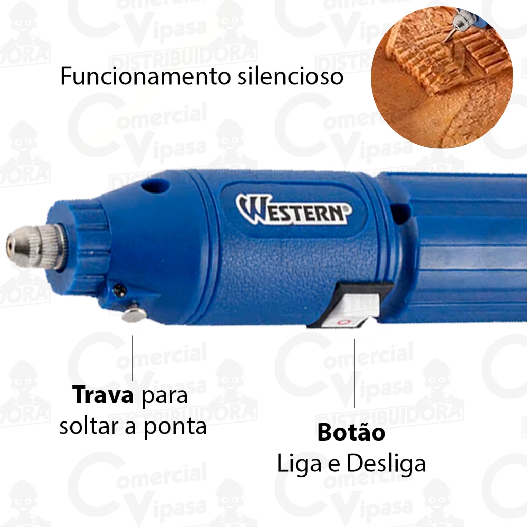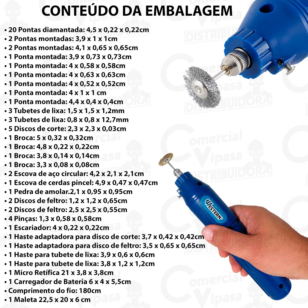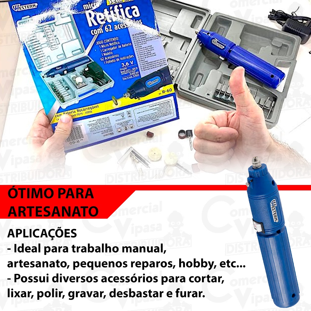 Kit Jogo Micro Retífica Lixadeira Sem Fio Portátil Com Maleta 63 Peças Acessórios Bivolt - WESTERN