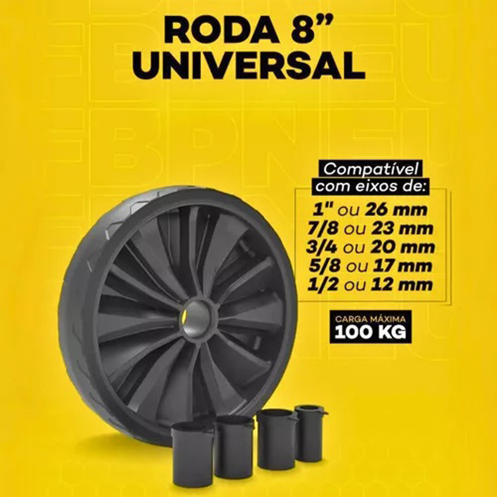 Roda Universal 8Pol. Para Carro Carrinho De Mão Carga Feira Transporte Carriola Até 100kg Multiuso
