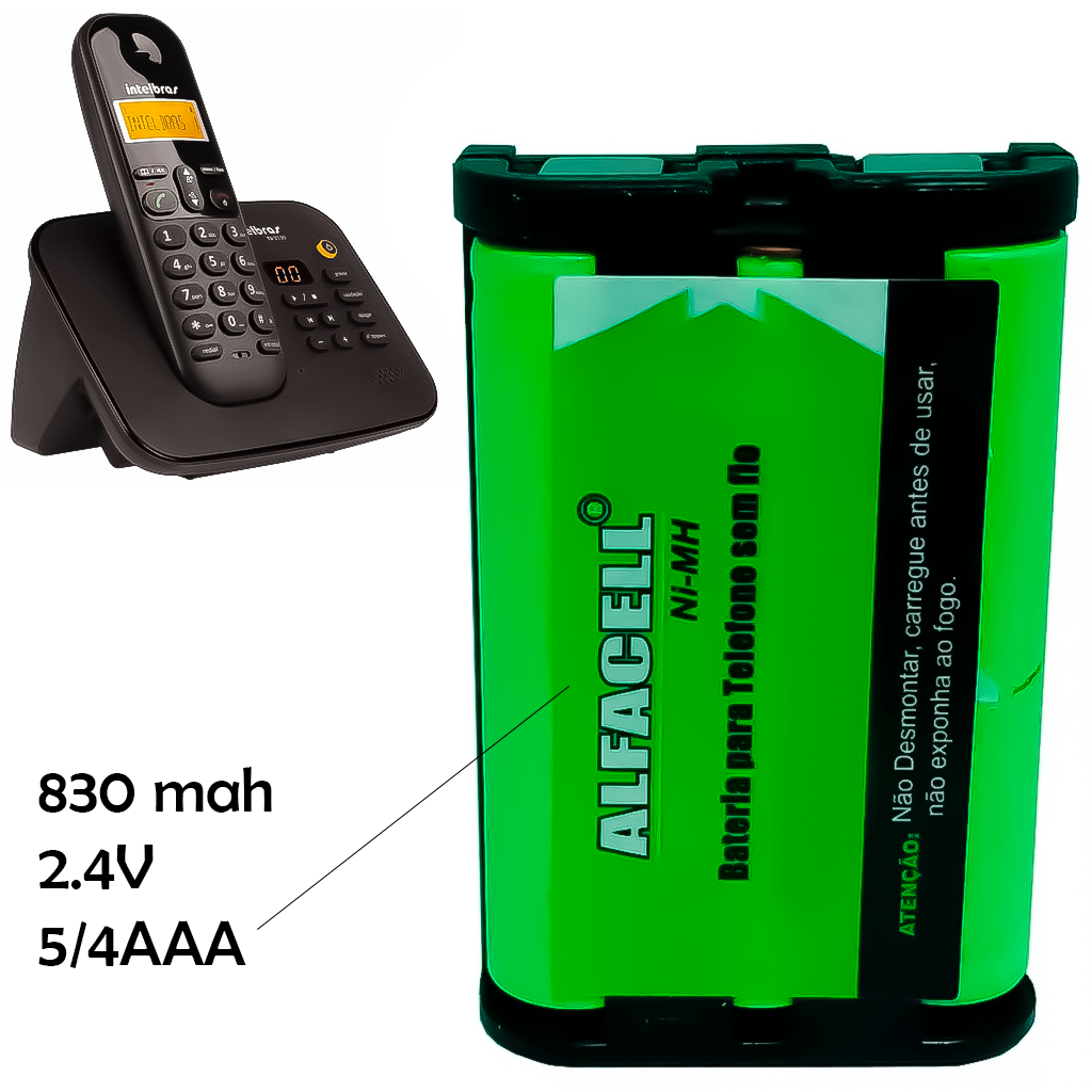 Bateria Recarregável Telefone Sem Fio 830MAH 2.4V 5/4AAA Vários Modelos Ramal Residencial Comercial