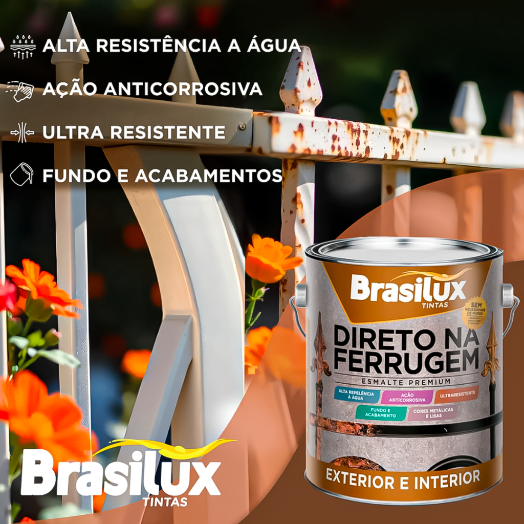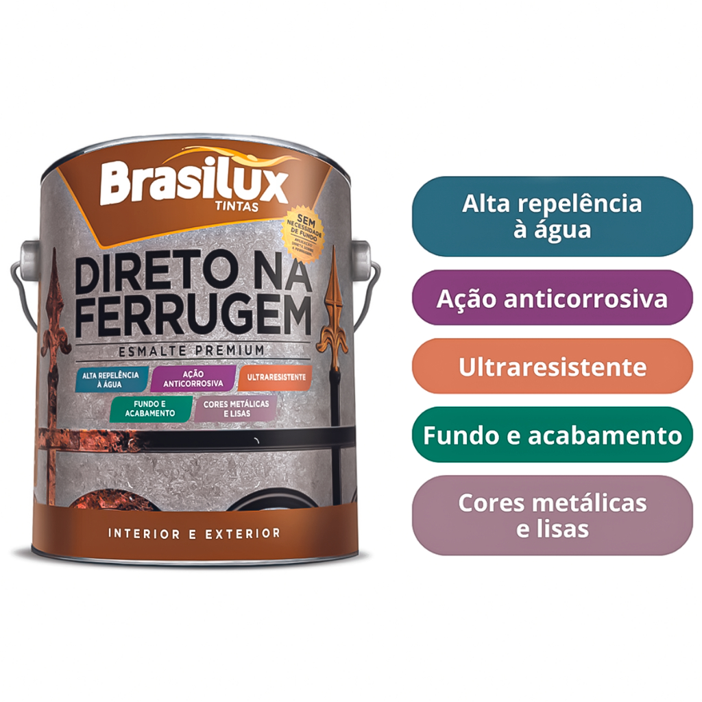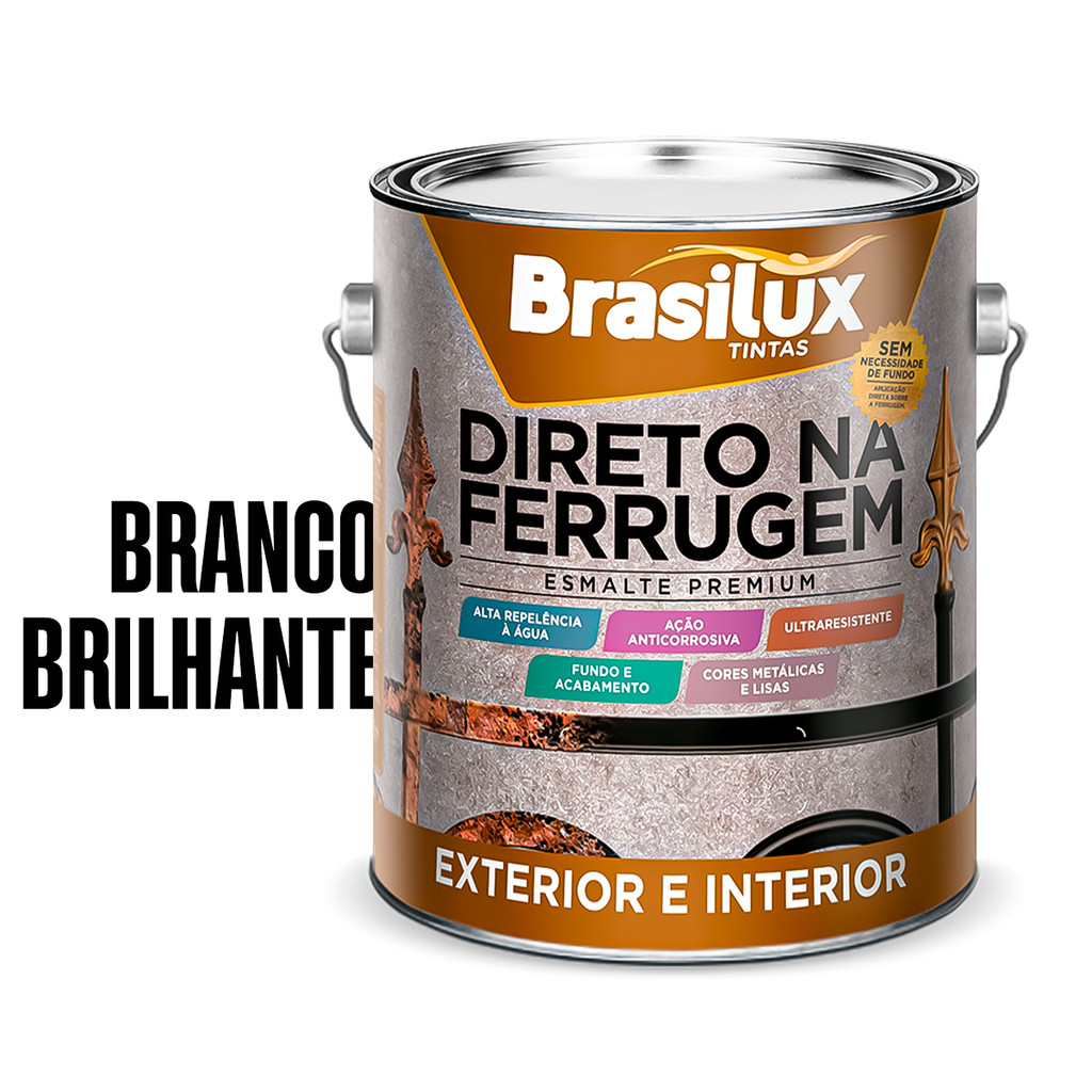 Tinta Direto Na Ferrugem 3,6l Brasilux - Várias Cores Anticorrosivo Esmalte Protege Alta Resistencia