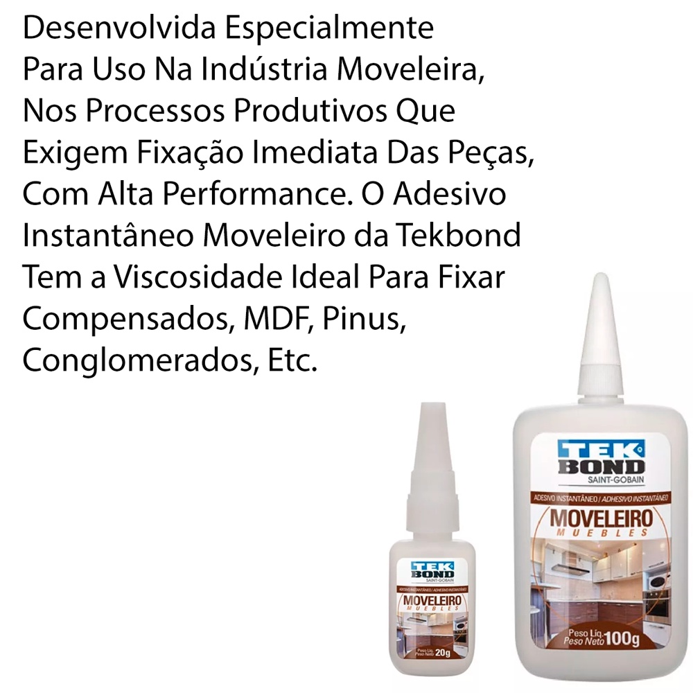 Adesivo Instantâneo Moveleiro 20g 100g Bico Antientupimento TekBond Para Madeiras Em Geral