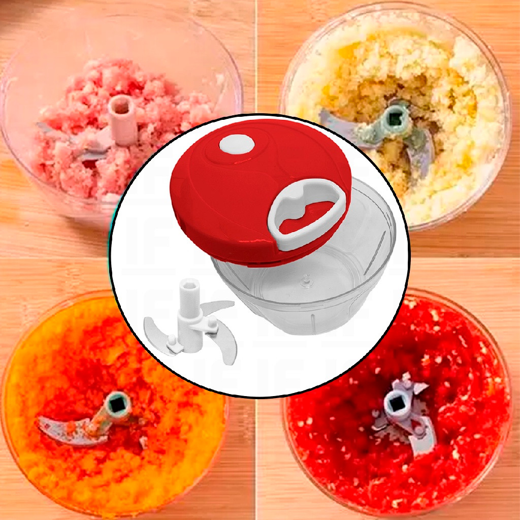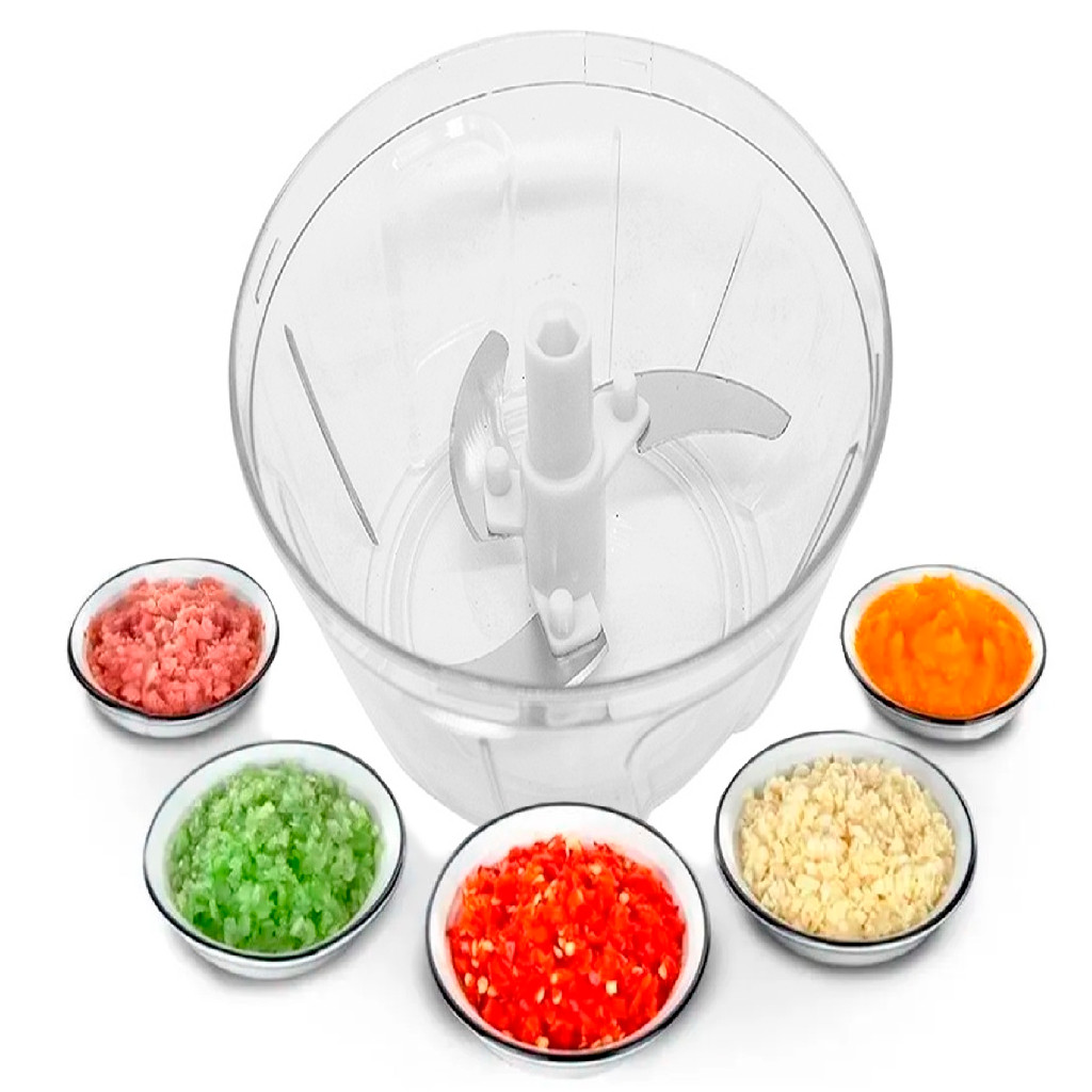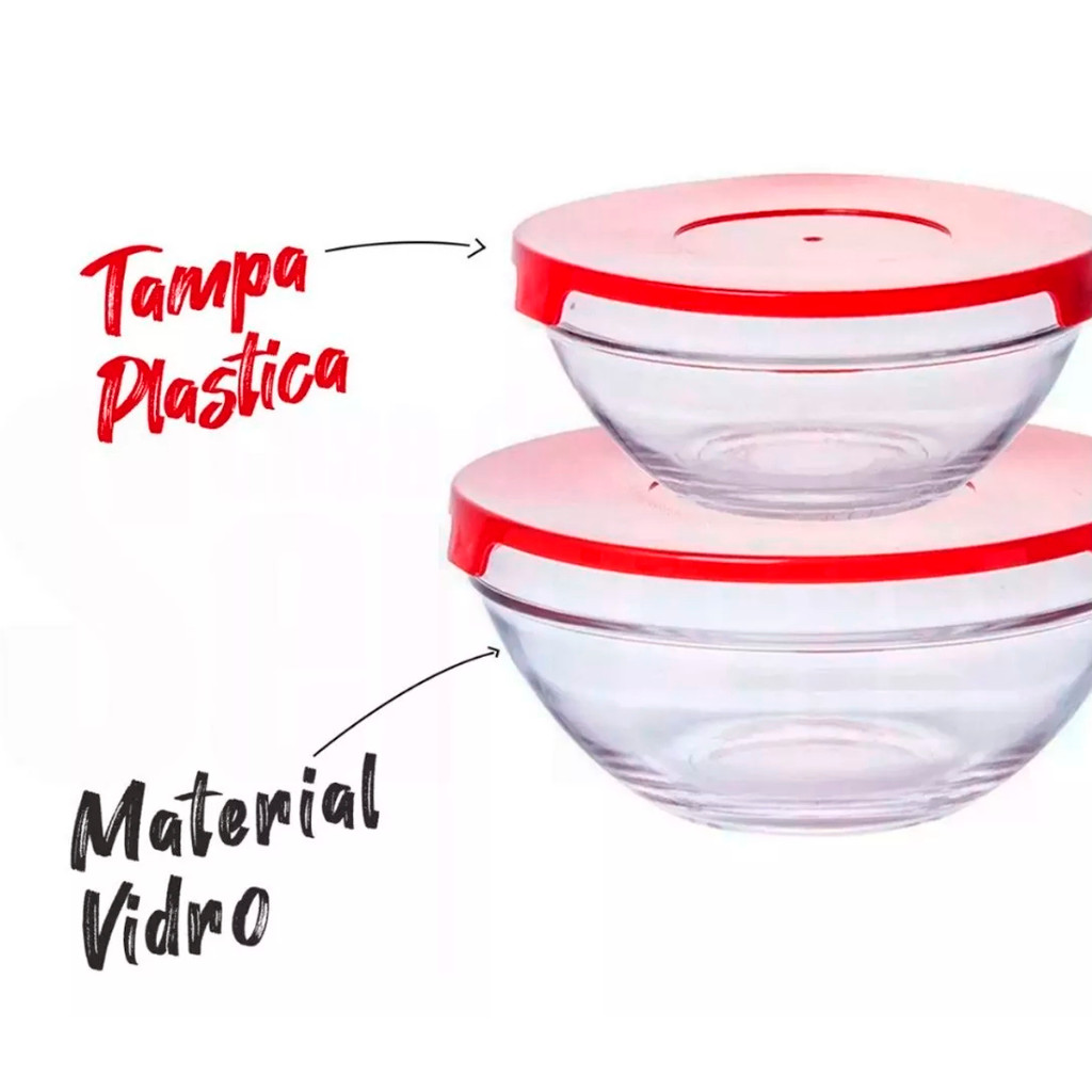 Kit Jogo Cozinha 5 Potes Redondos De Vidro Com Tampa + Triturador De Alimentos Manual 500ml Prático