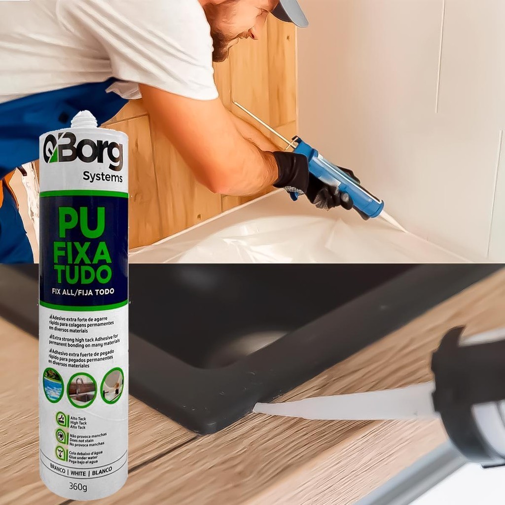 Adesivo De Silicone Selante De Poliuretano Fixa Tudo 140g - 360g Uso Geral - Q-Borg Profissional