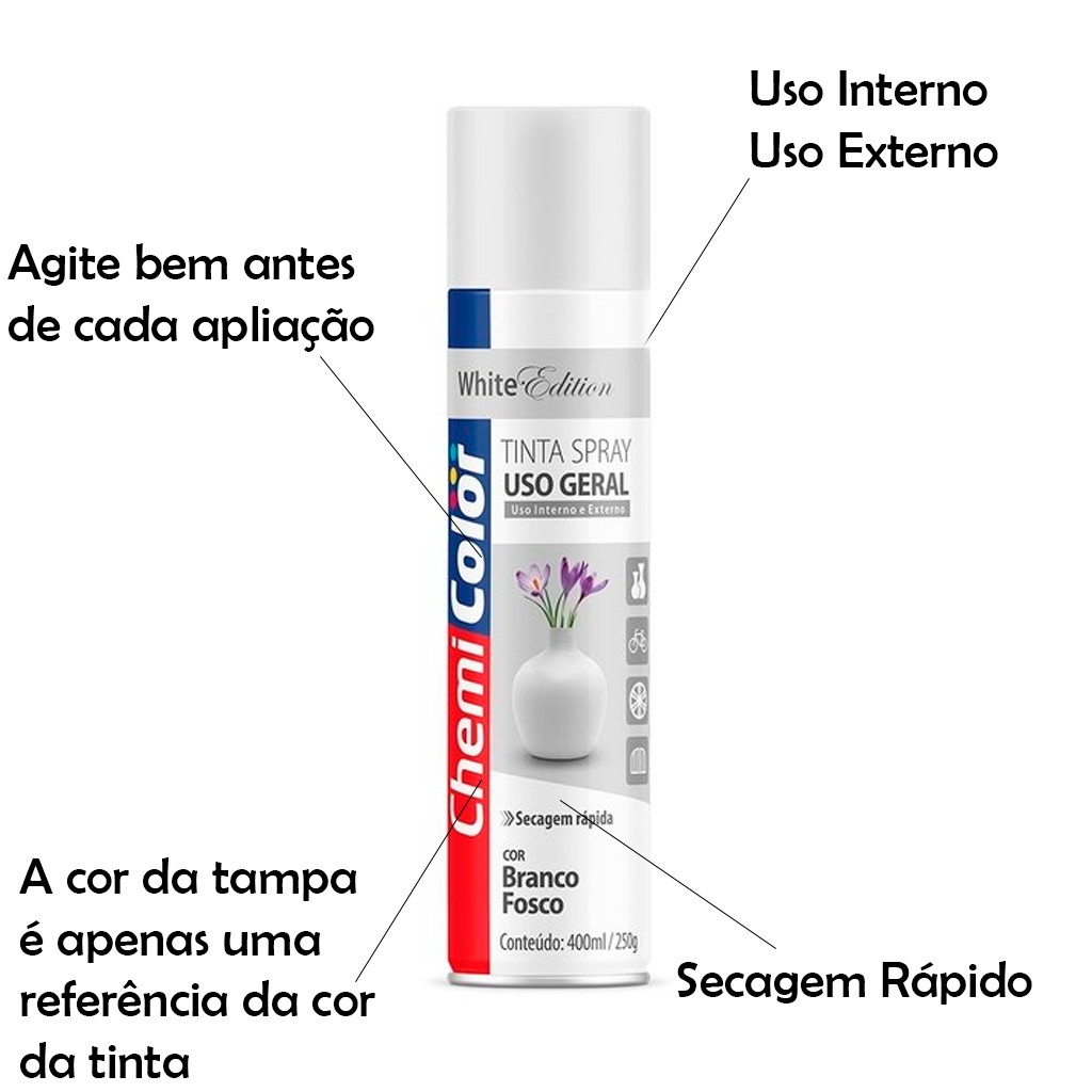 Tinta Spray Branco Fosco Uso Geral Secagem Rápida