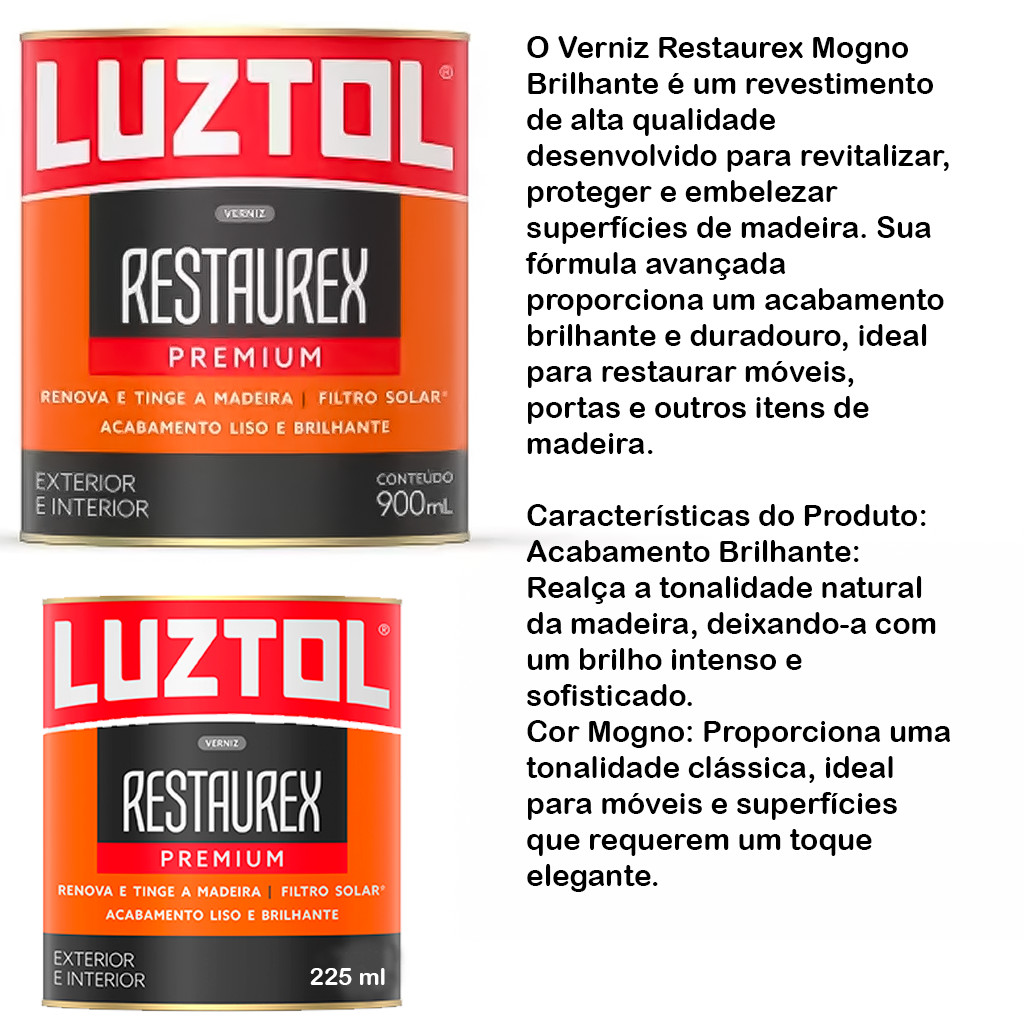 Verniz Restaurex Mogno Brilhante Renova e Tinge a Madeira