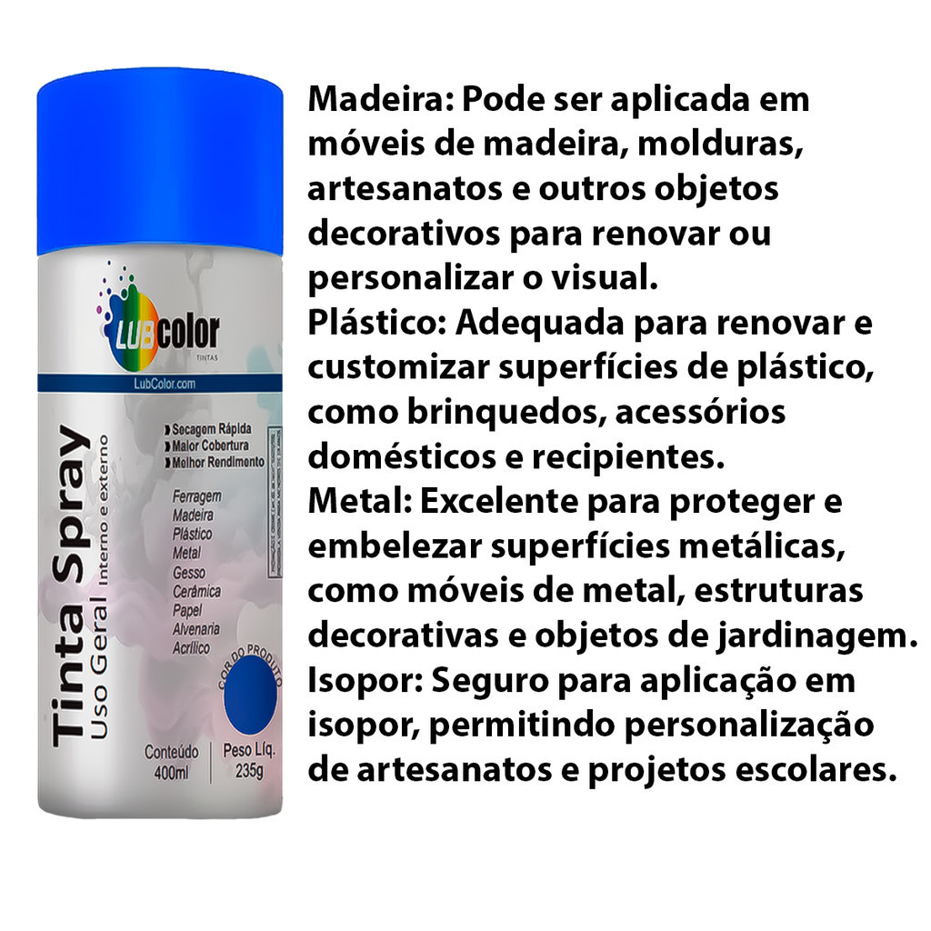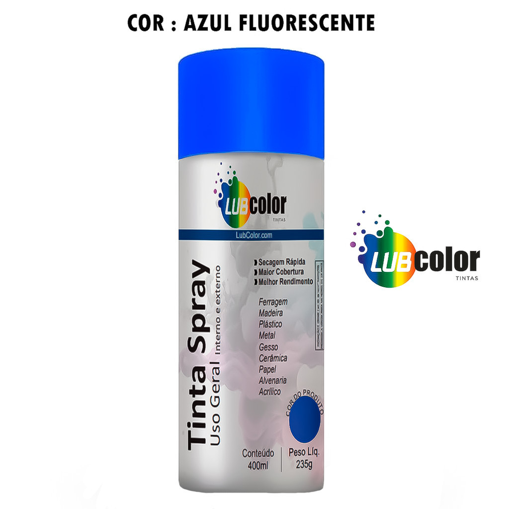 Tinta Spray Azul Fluorescente 400ml Madeira Plástico Metal Isopor Papel