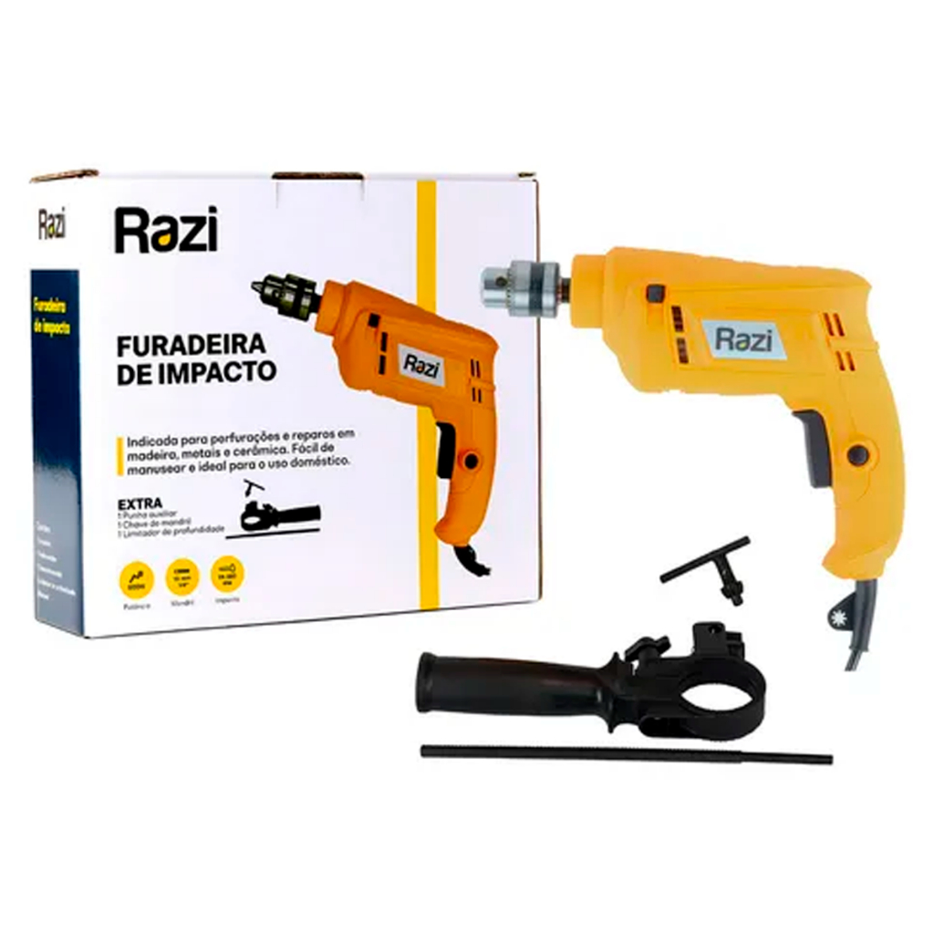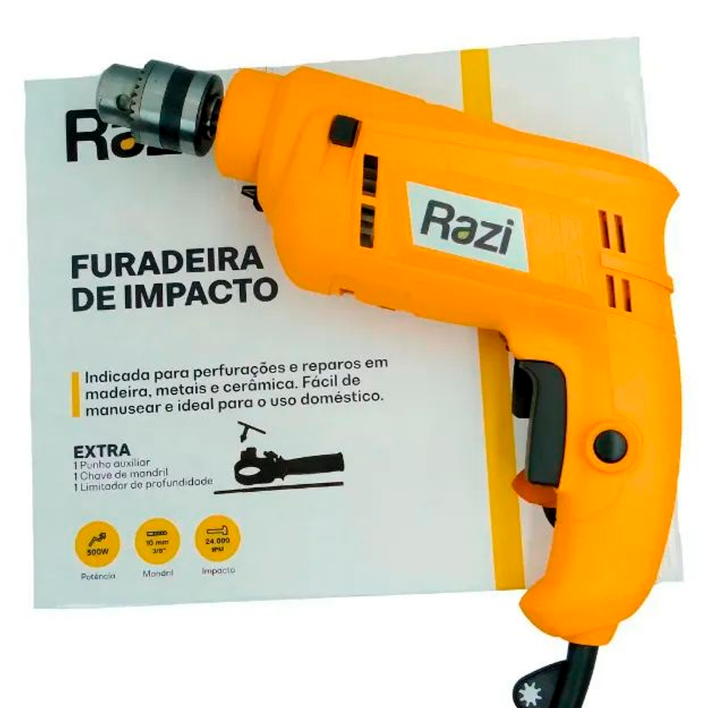 Furadeira Impacto Elétrica Mandril 3/8Pol. 10mm 500W Uso Profissional Perfuração Concreto Alvenaria