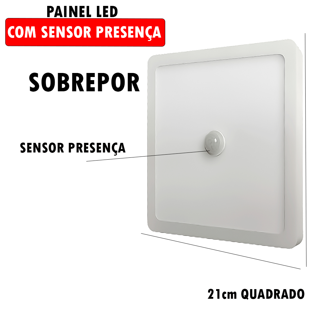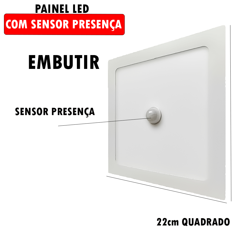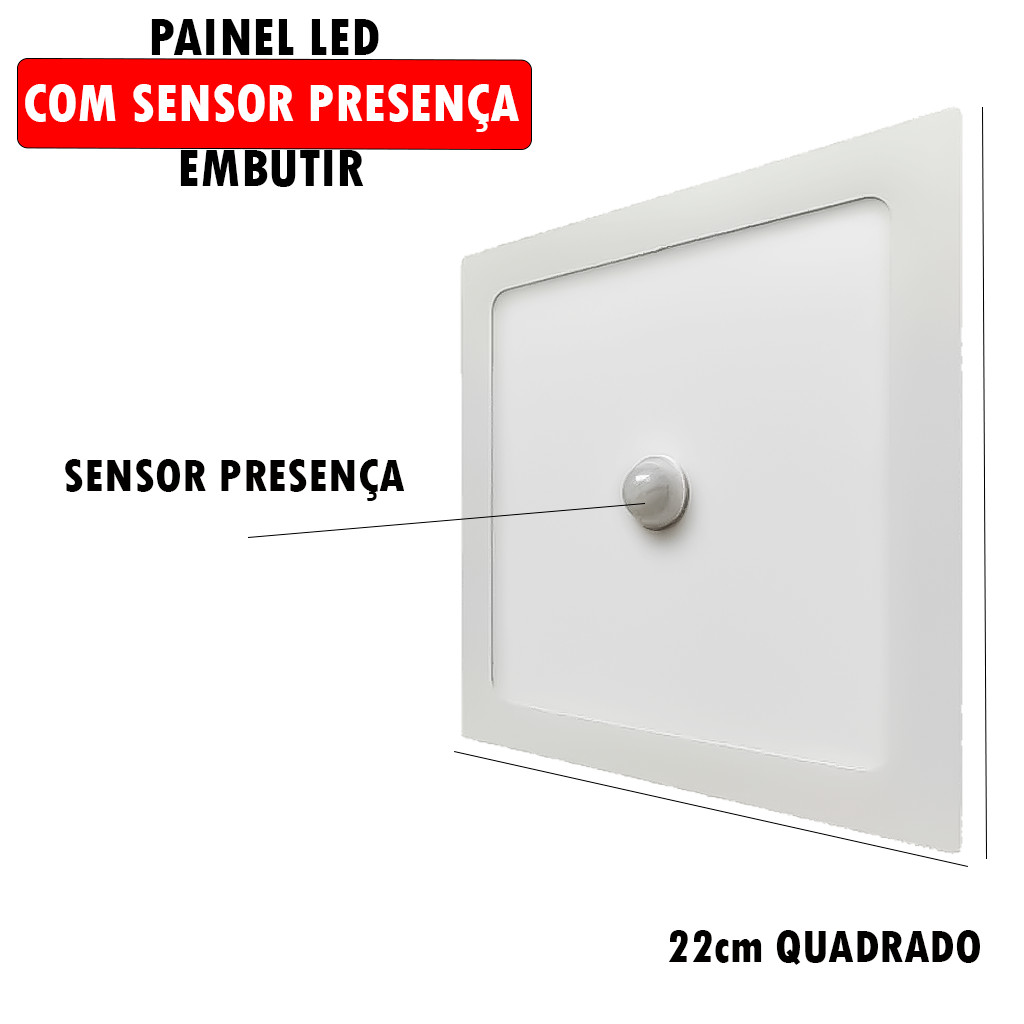 Luminária Painel Led Embutir - Sobrepor Original Blumenau 18W Luz Branco 6500K C/ Sensor De Presença
