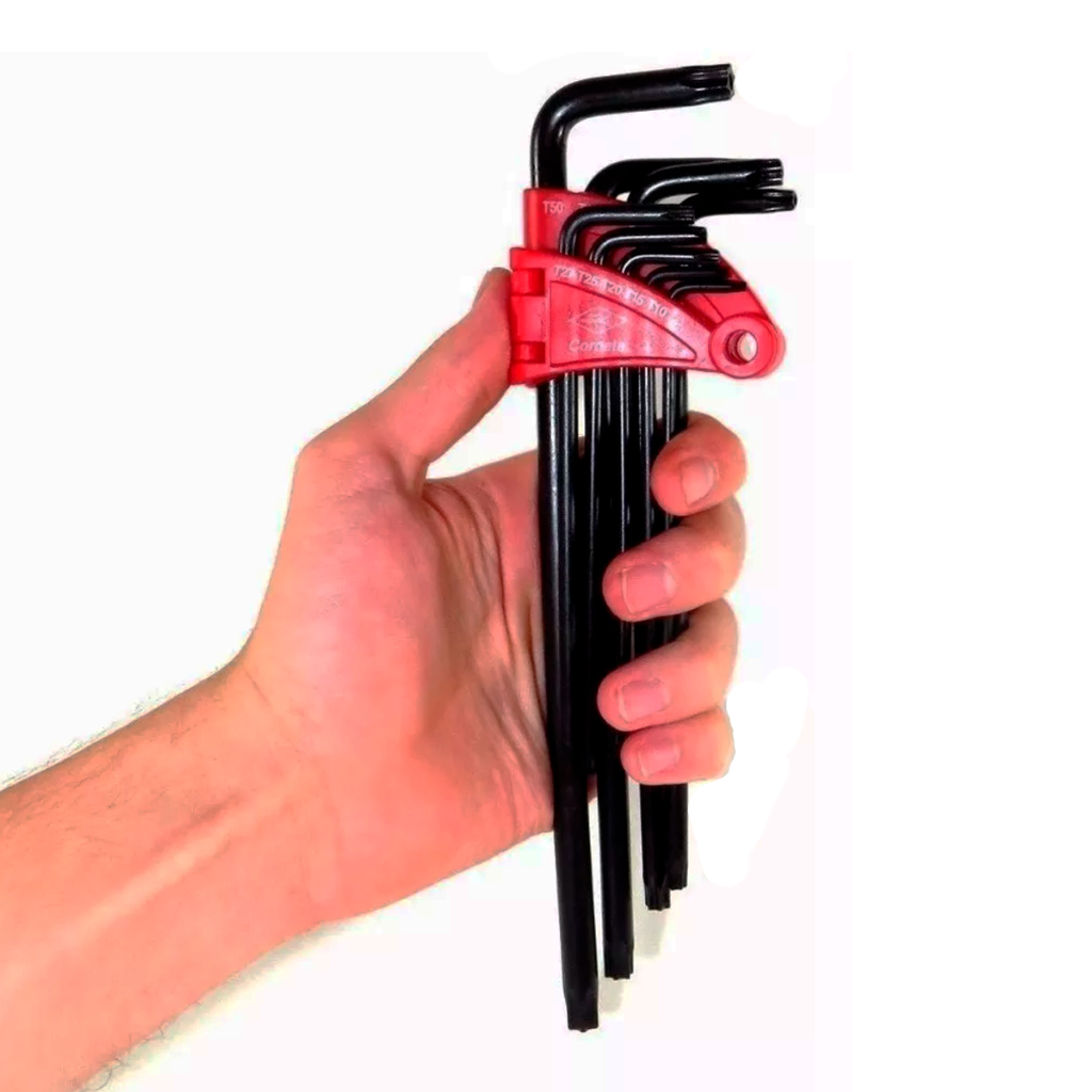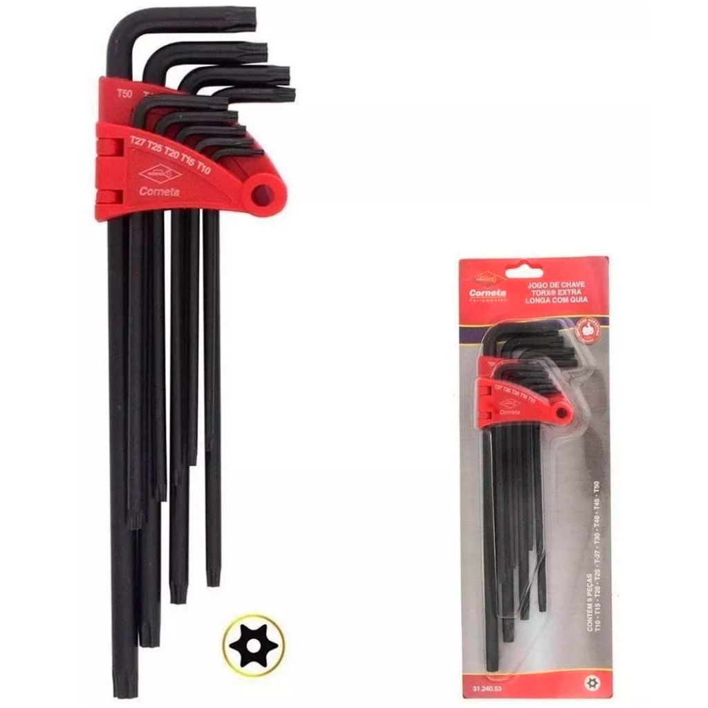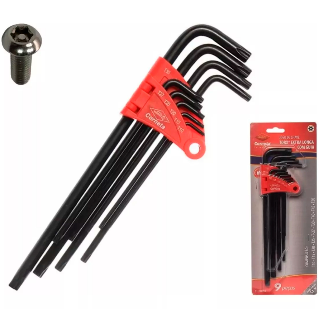 Jogo De Chave Torx Corneta Extra Longa Com Guia 9 Peças Cromo Vanádio