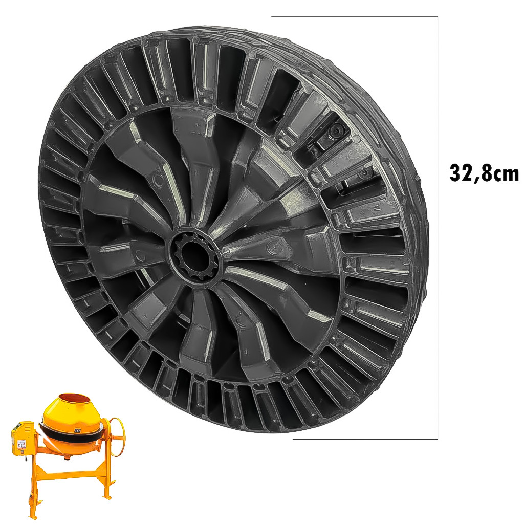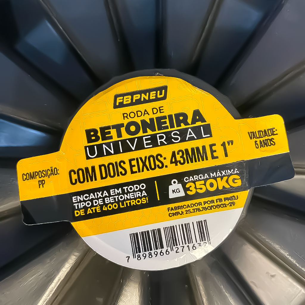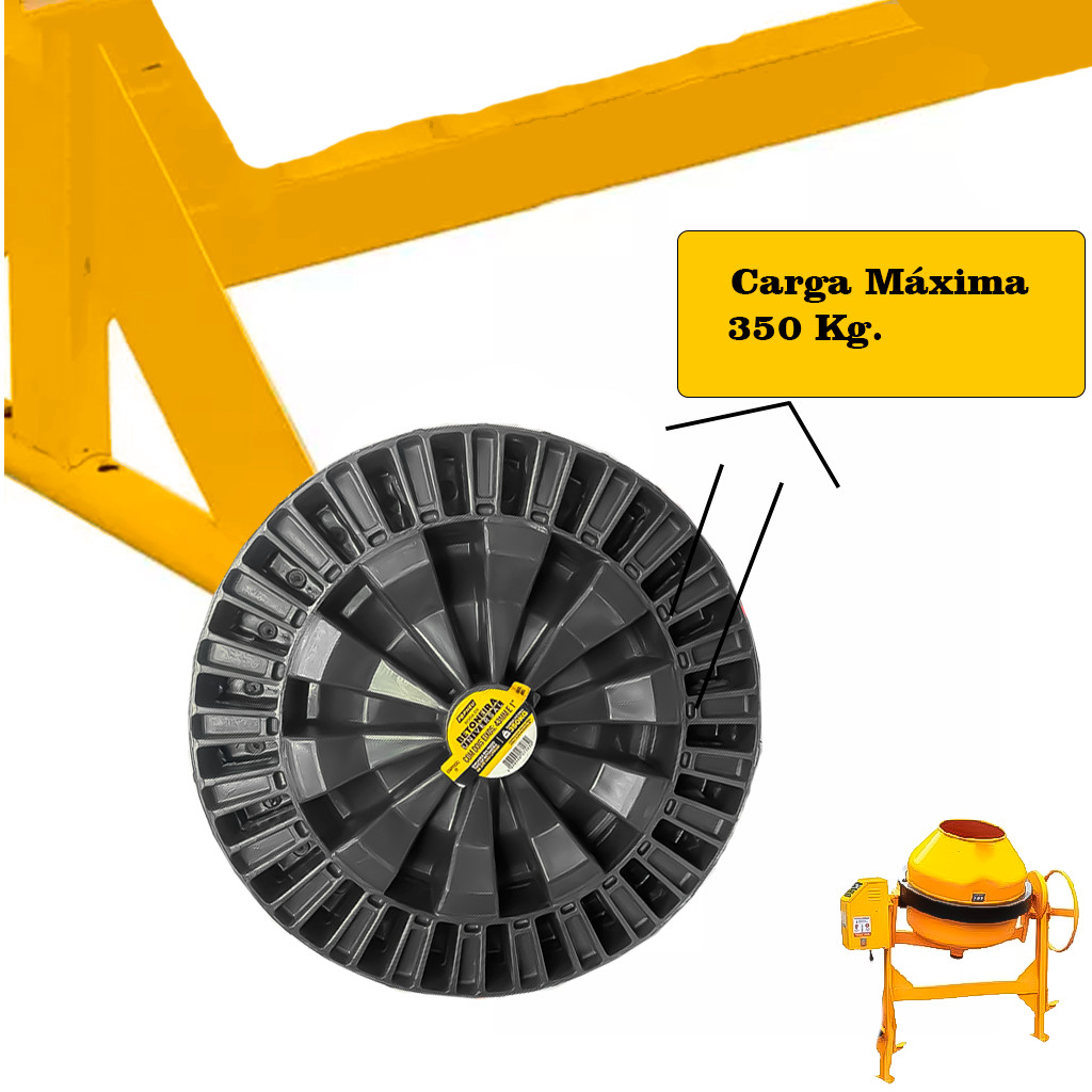 Kit Jogo 2 Rodas Para Betoneira Universal Plástica Rígido Eixo 43mm Ou 1 Polegada Capacidade 350 KG