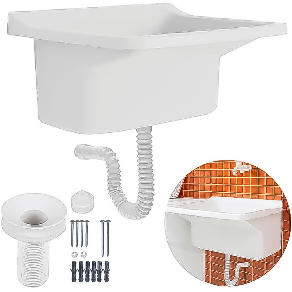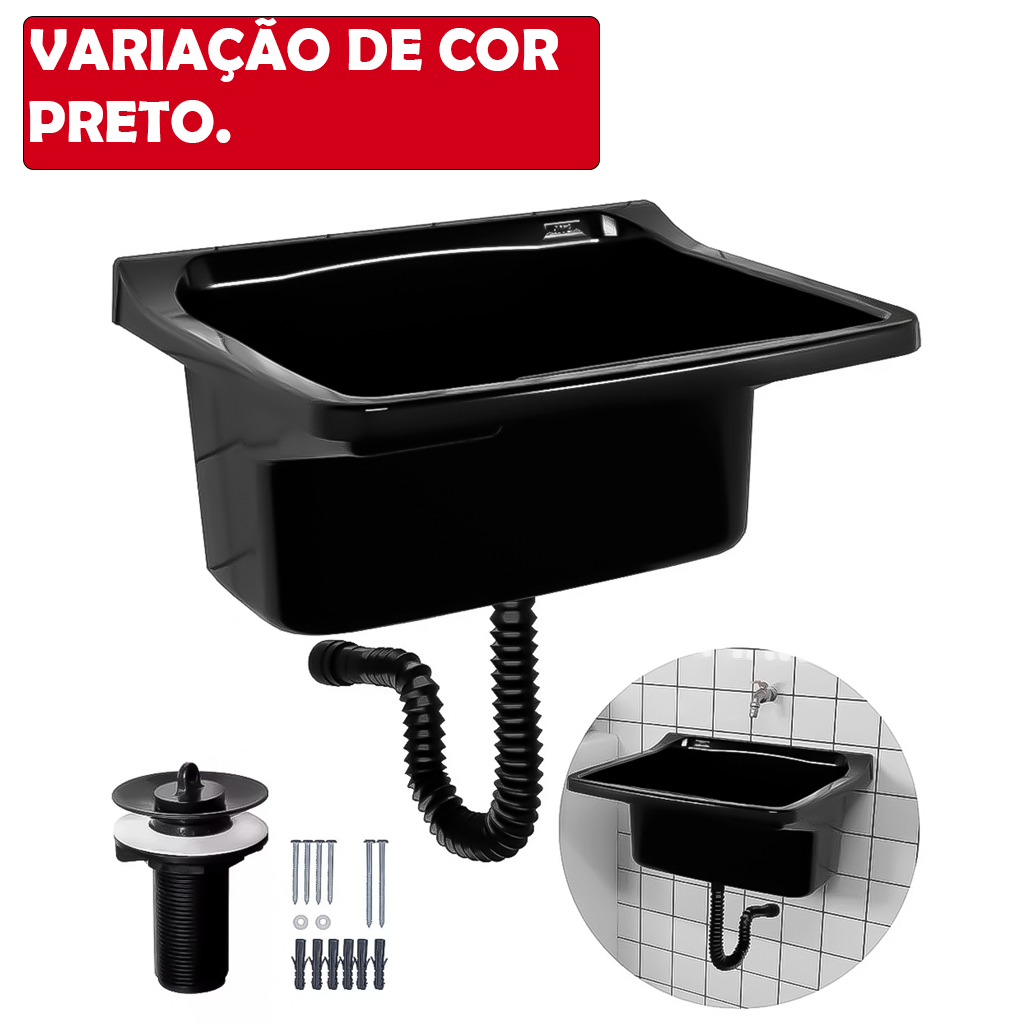 Tanque Plástico Para Lavanderia 22L Com Sifão E Válvula Universal Pia Completa Compacta ASTRA