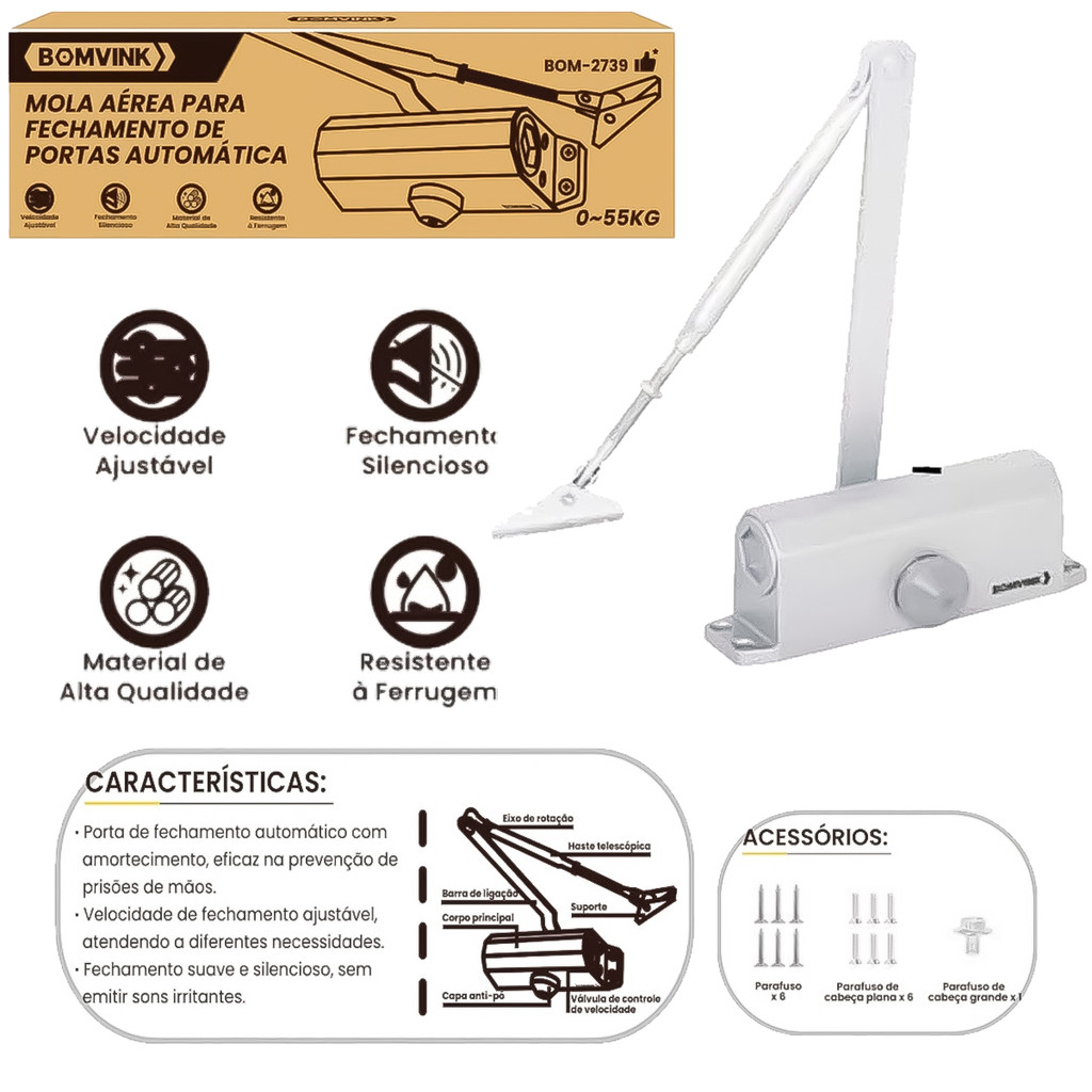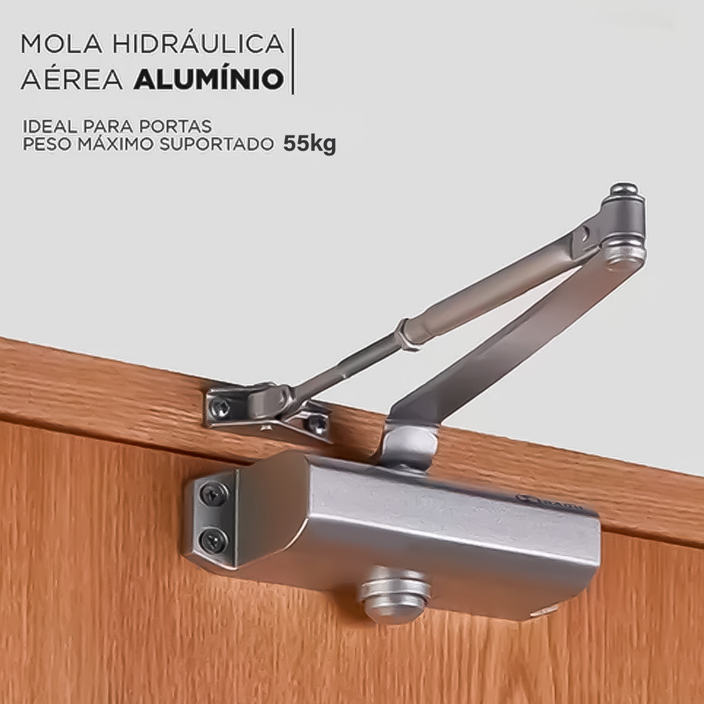 Mola Aérea Hidráulica Para Porta De Madeira Aço Fechamento Automático Até 55kg Profissional