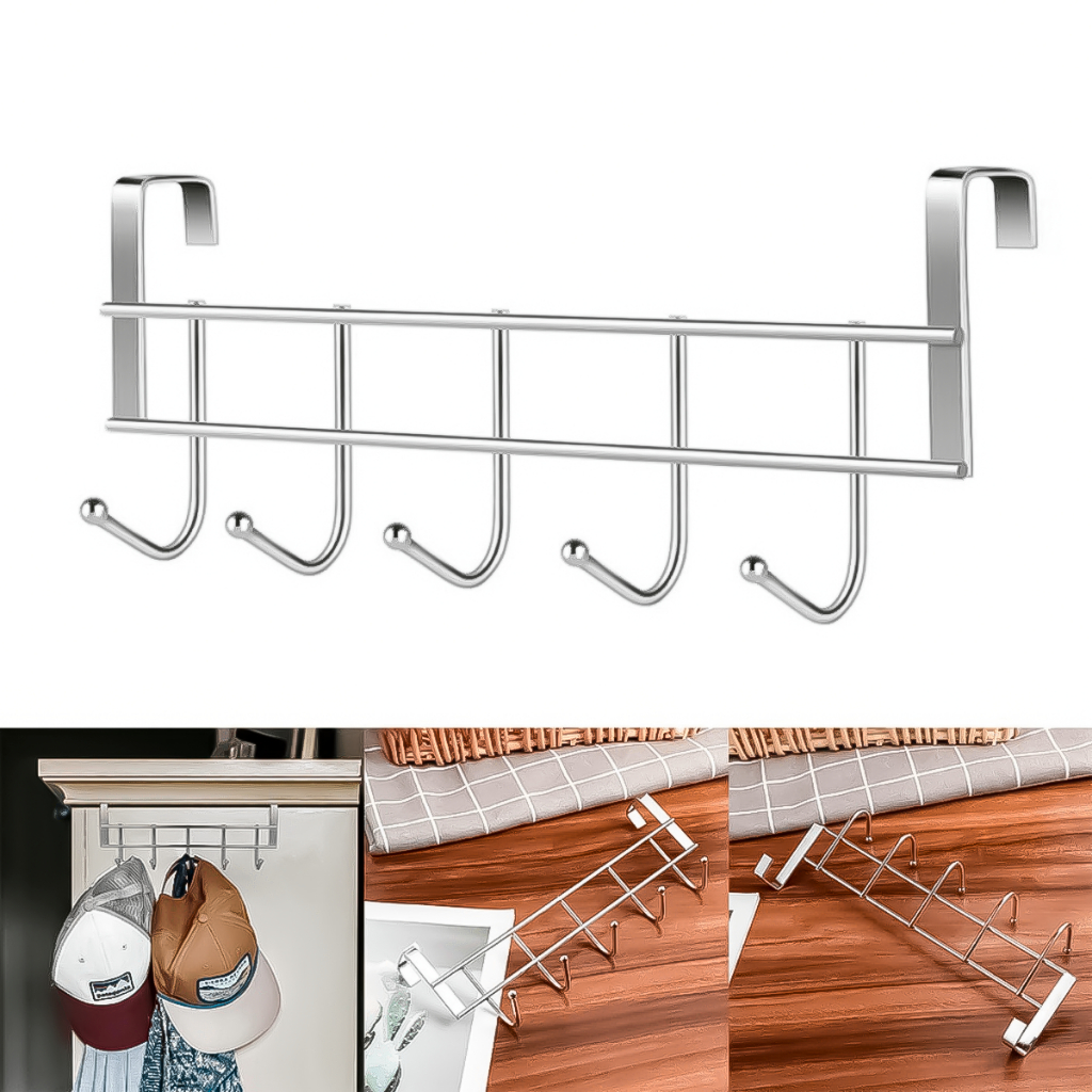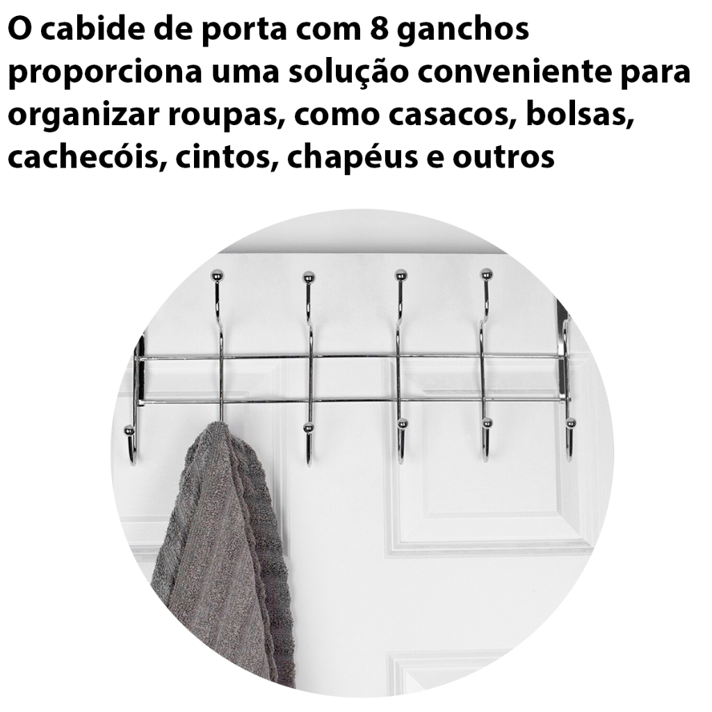 Gancho De Porta para Roupas tipo Cabide 8 Ganchos Ferro 32cm Prata Ou Bronze Sortidos