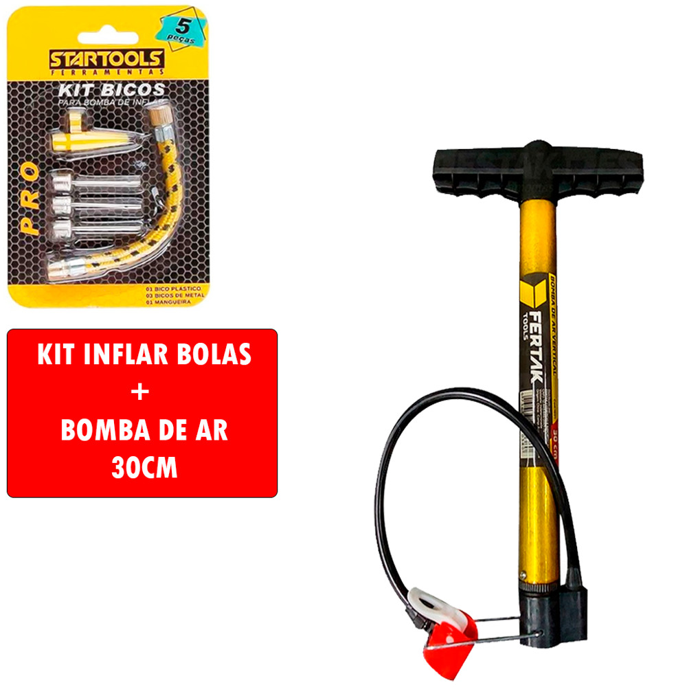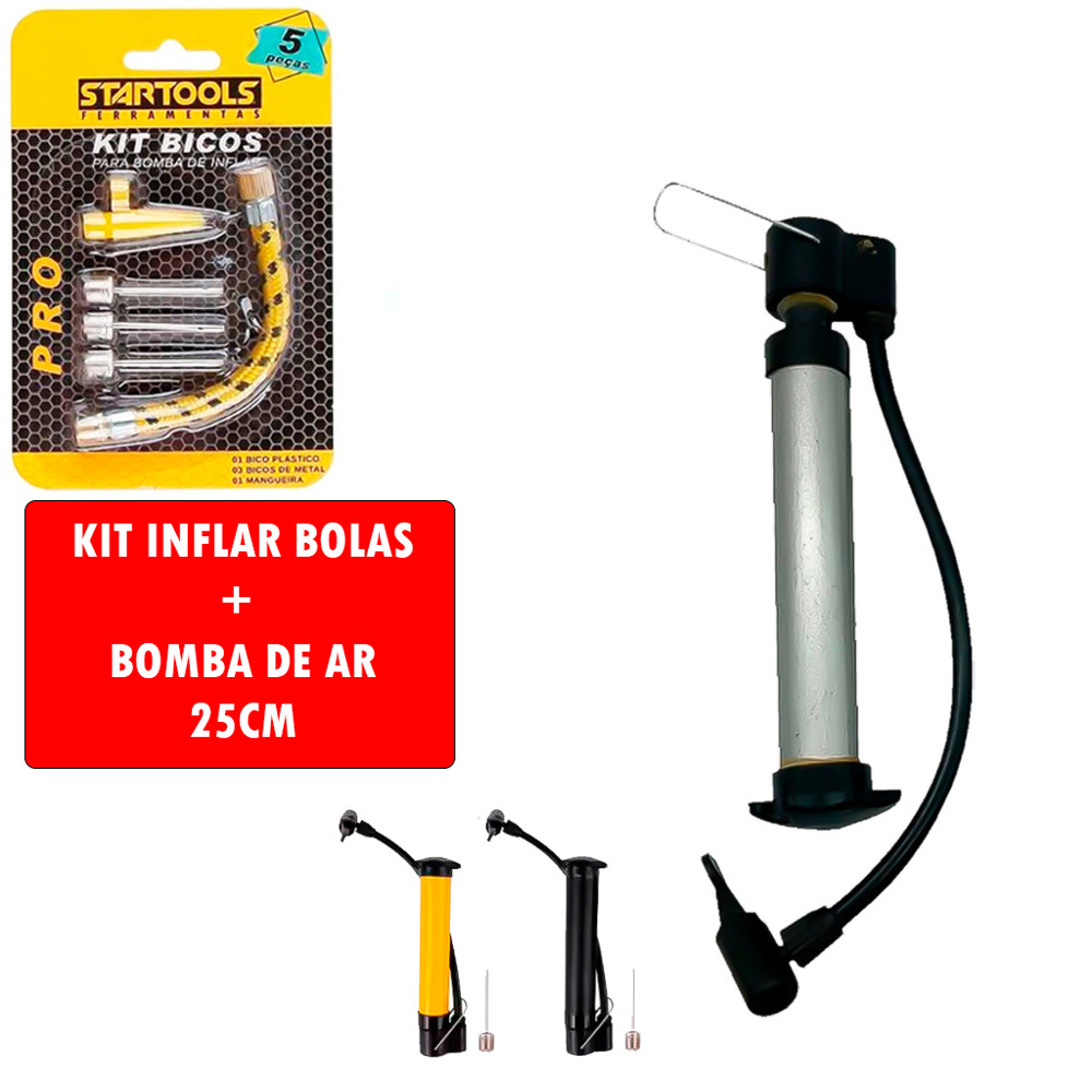 Bomba De Ar Encher Pneu Bicicleta Bike Carro Moto Fácil Universal + Kit Acessórios Encher Bola
