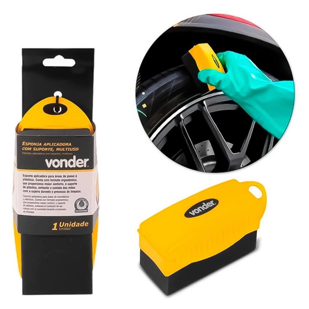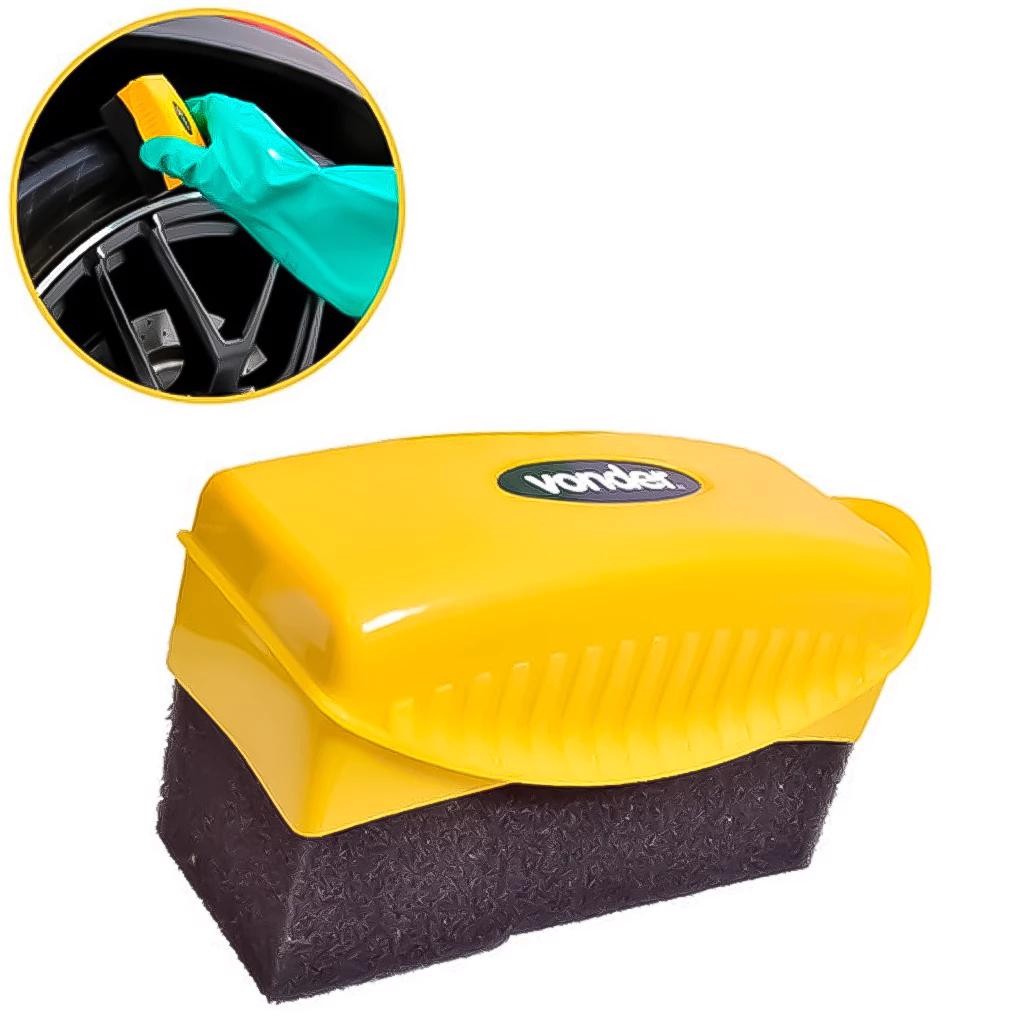 Esponja Aplicadora De Cera Ou Pretinho Pneu Com Suporte Multiuso Automotiva Silicone Carro Moto