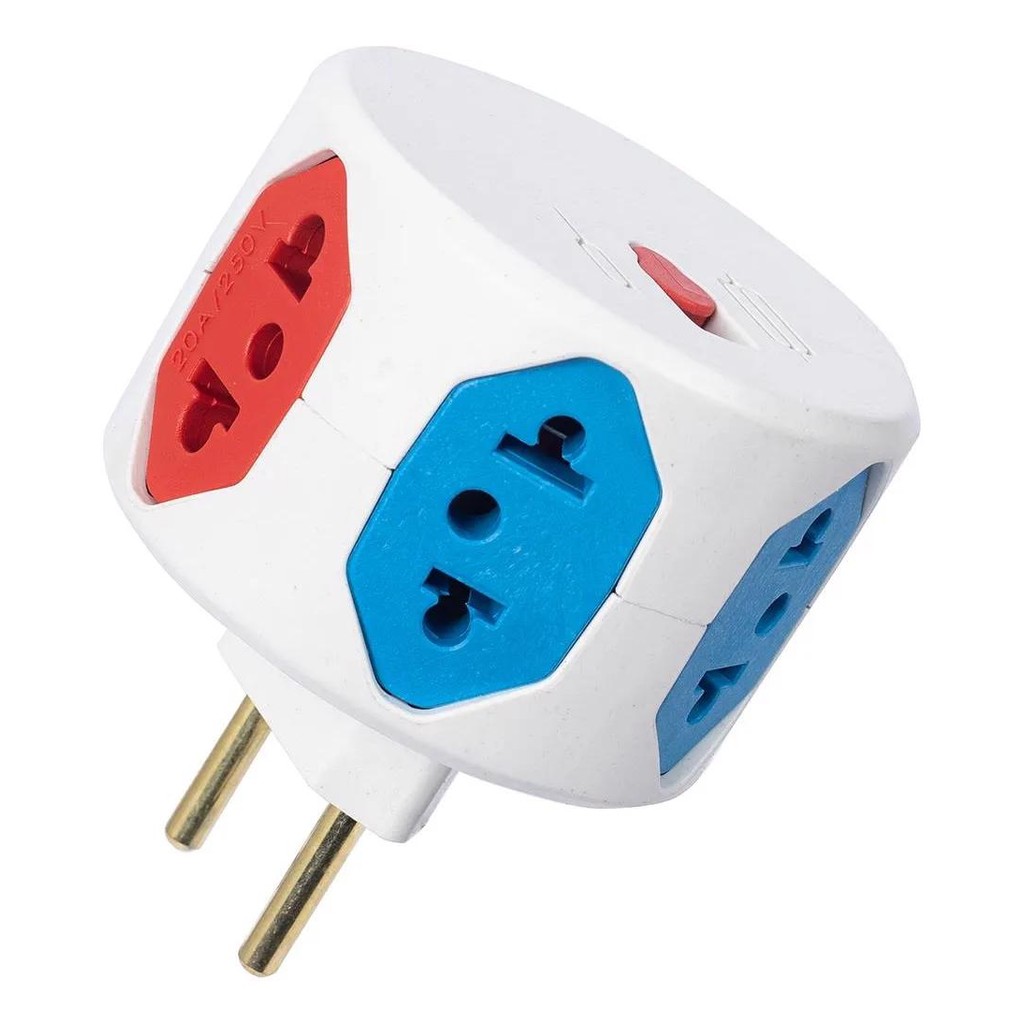 Pino Adaptador Múltiplo Extensor Com 6 Saídas Normatizado 20A 10A Filtro Linha Portátil Com Fusível