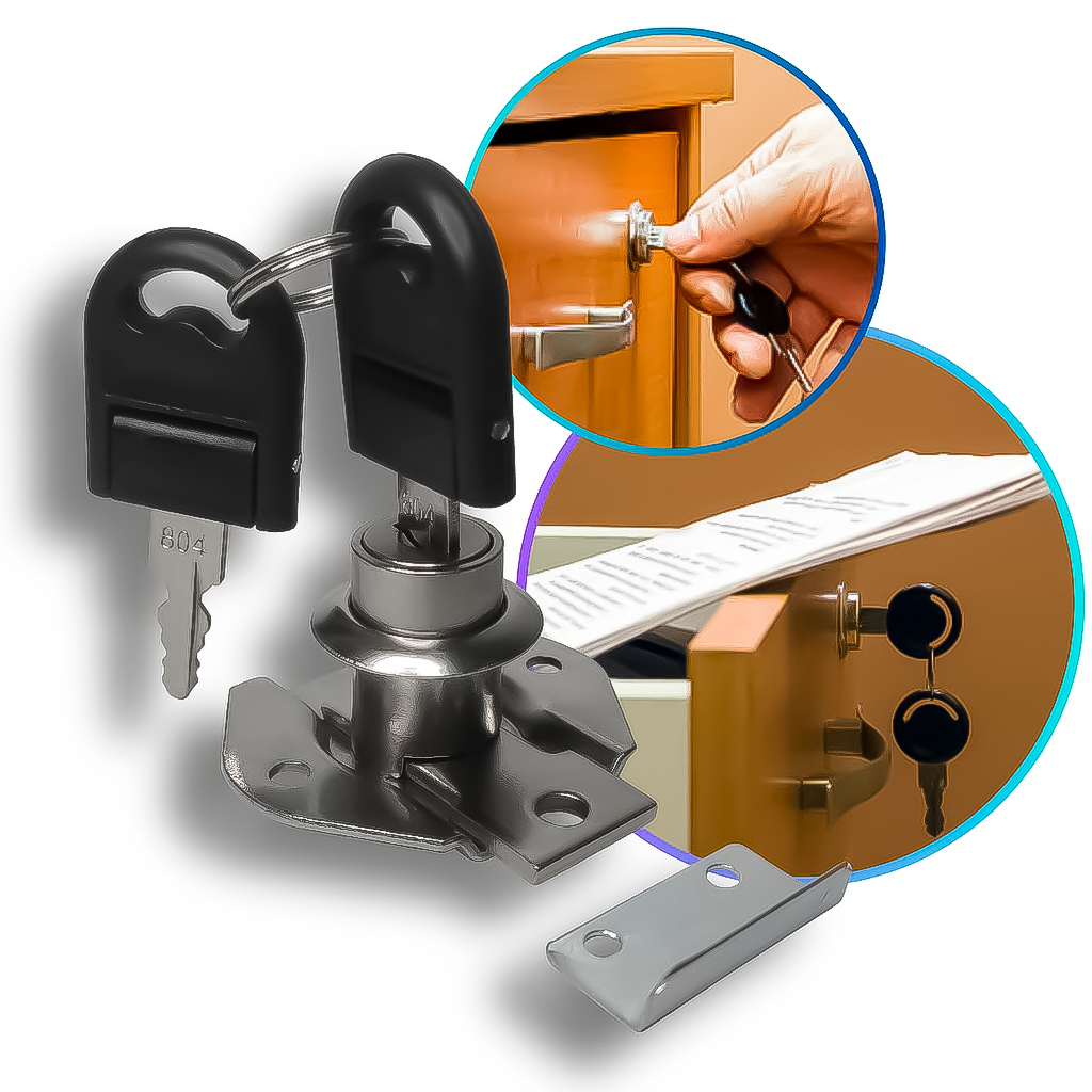 Fechadura Gaveta Tambor 31mm Com Chave Fixa Para Móveis Armários Guarda Roupa Em Geral