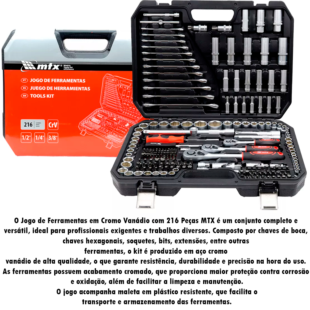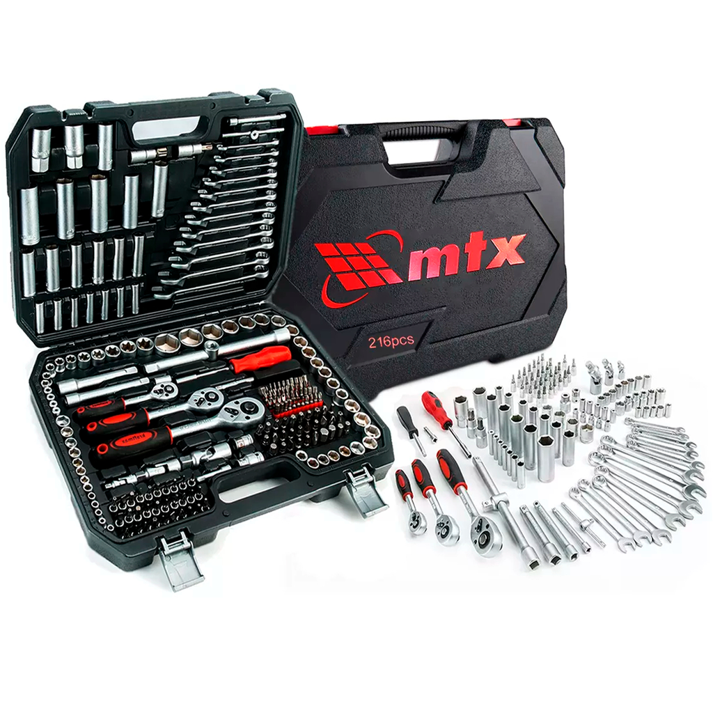 Jogo Ferramentas 216 Pçs Soquetes Chaves Catraca Bits Combinada + Maleta 1353055 - MTX Profissional