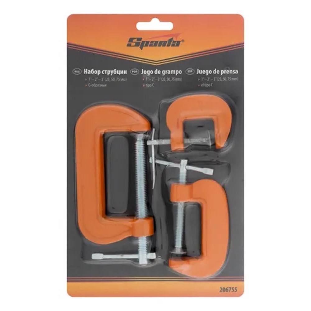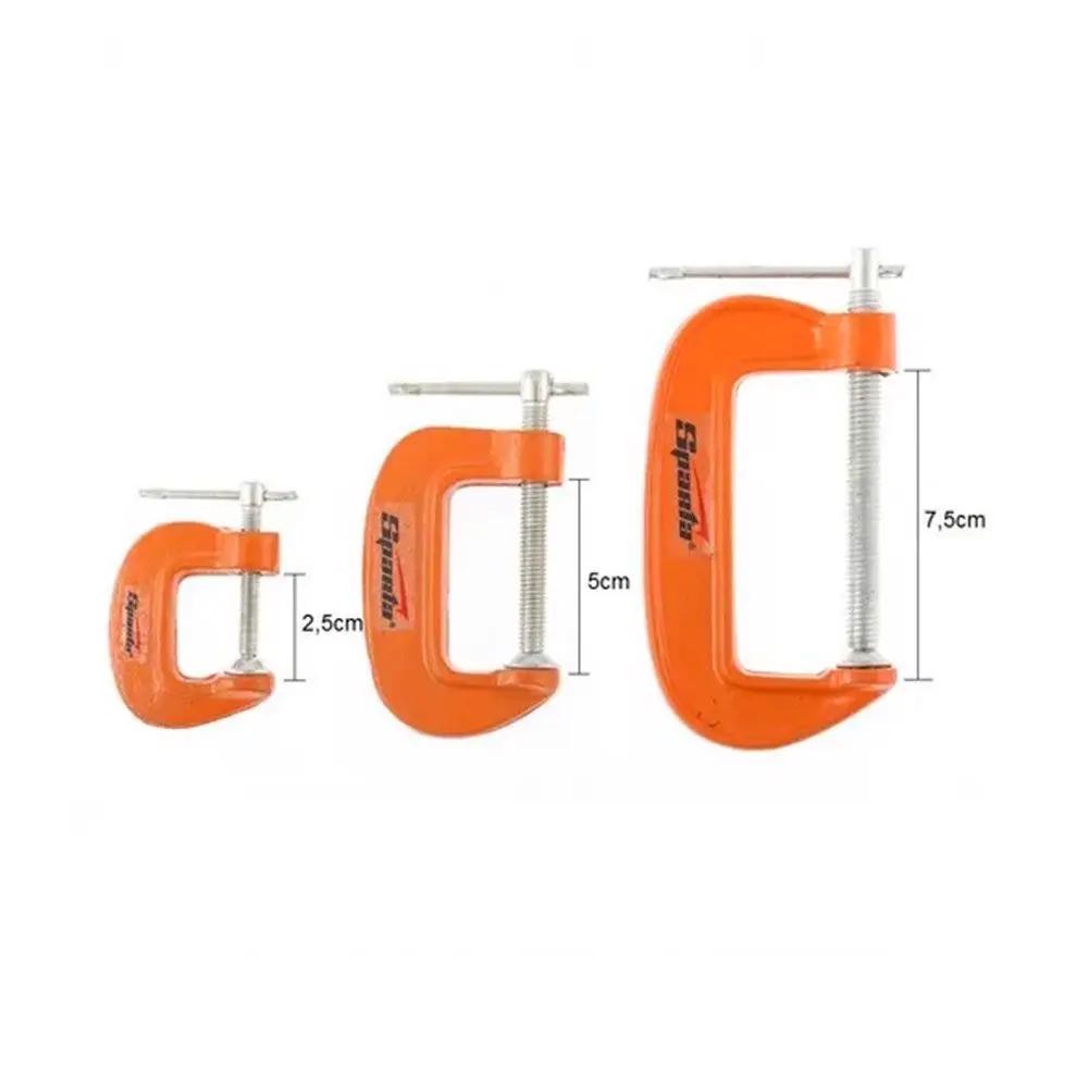 Kit Jogo 3 Grampo Sargento Tipo C Em Ferro Fundido 25mm - 50mm - 75mm Fixação Prender Resistente