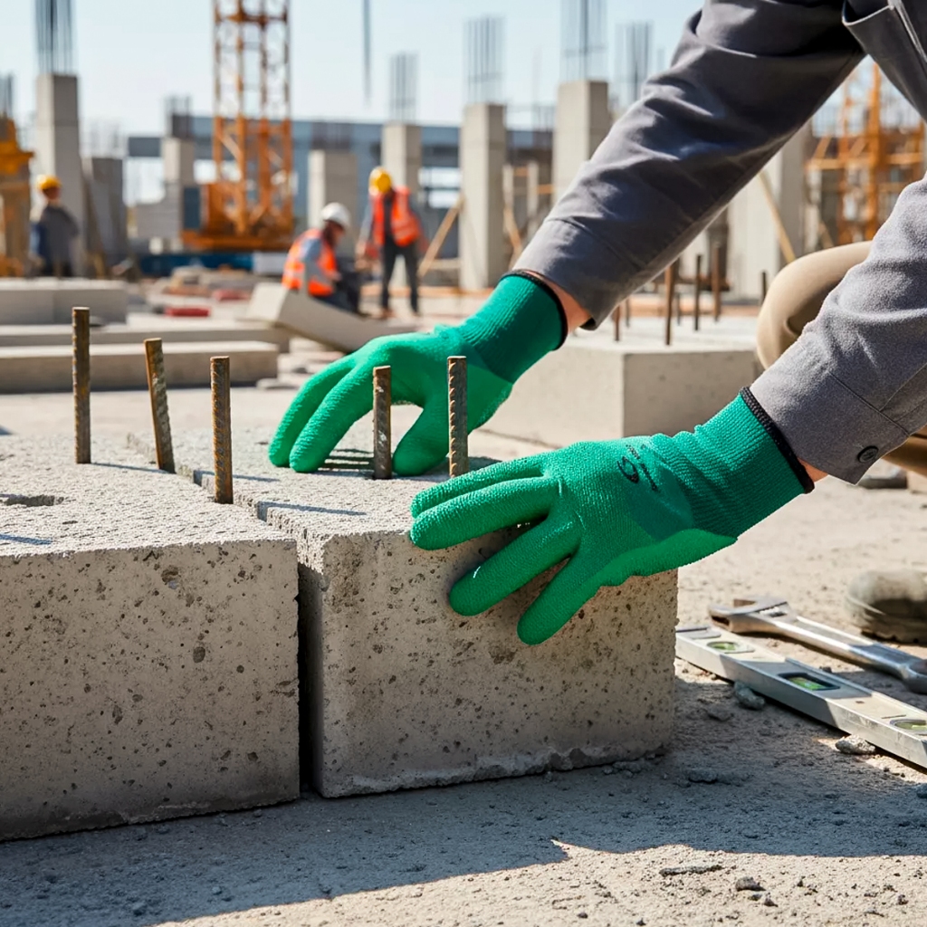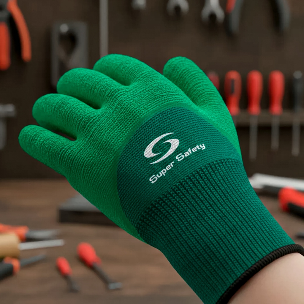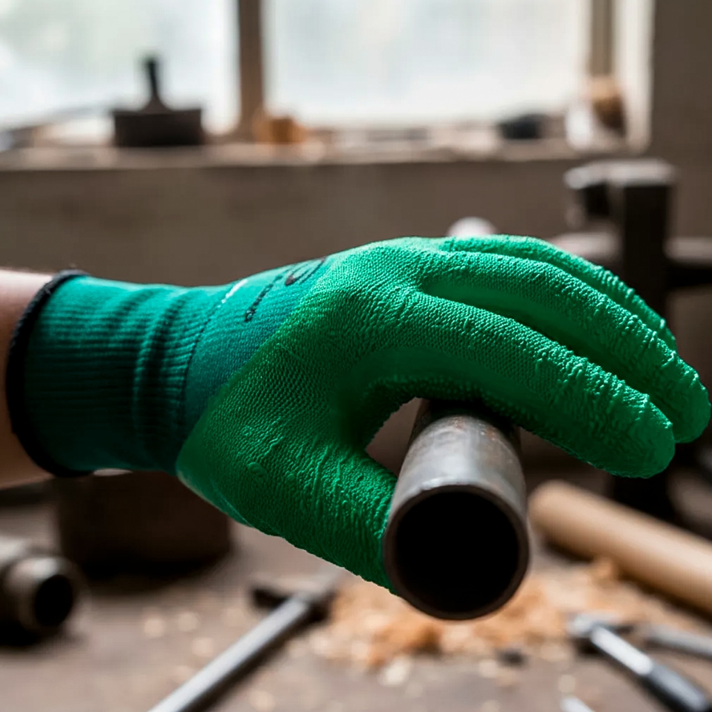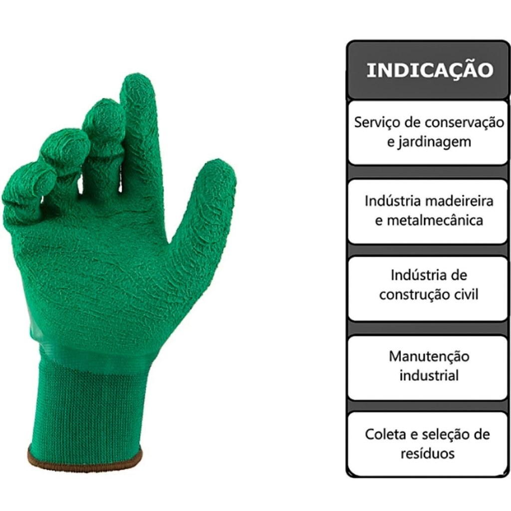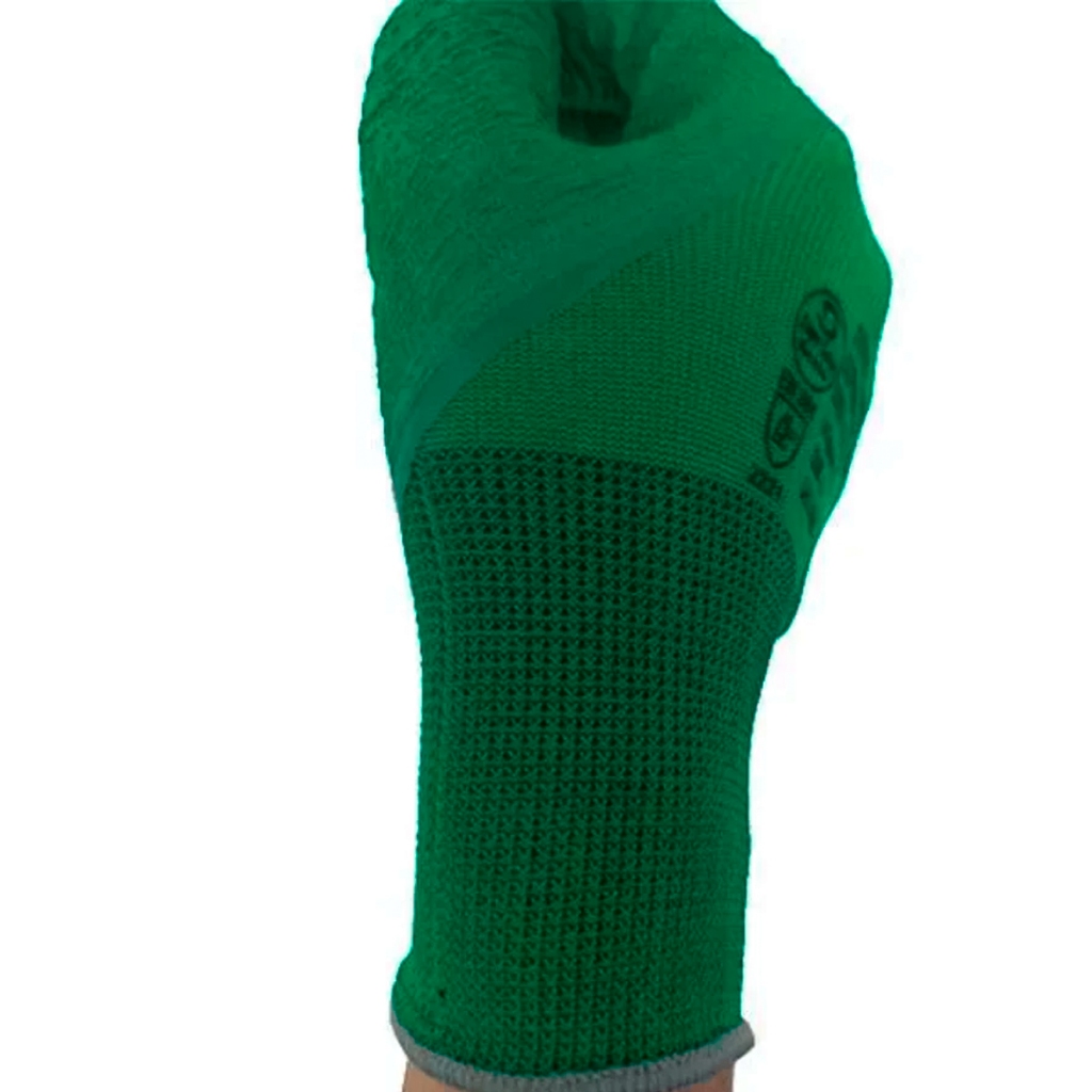 Luva Malha Emborrachada Verde 09 Proteção Aderência Antideslizante Obras Trabalho Conforto Segurança