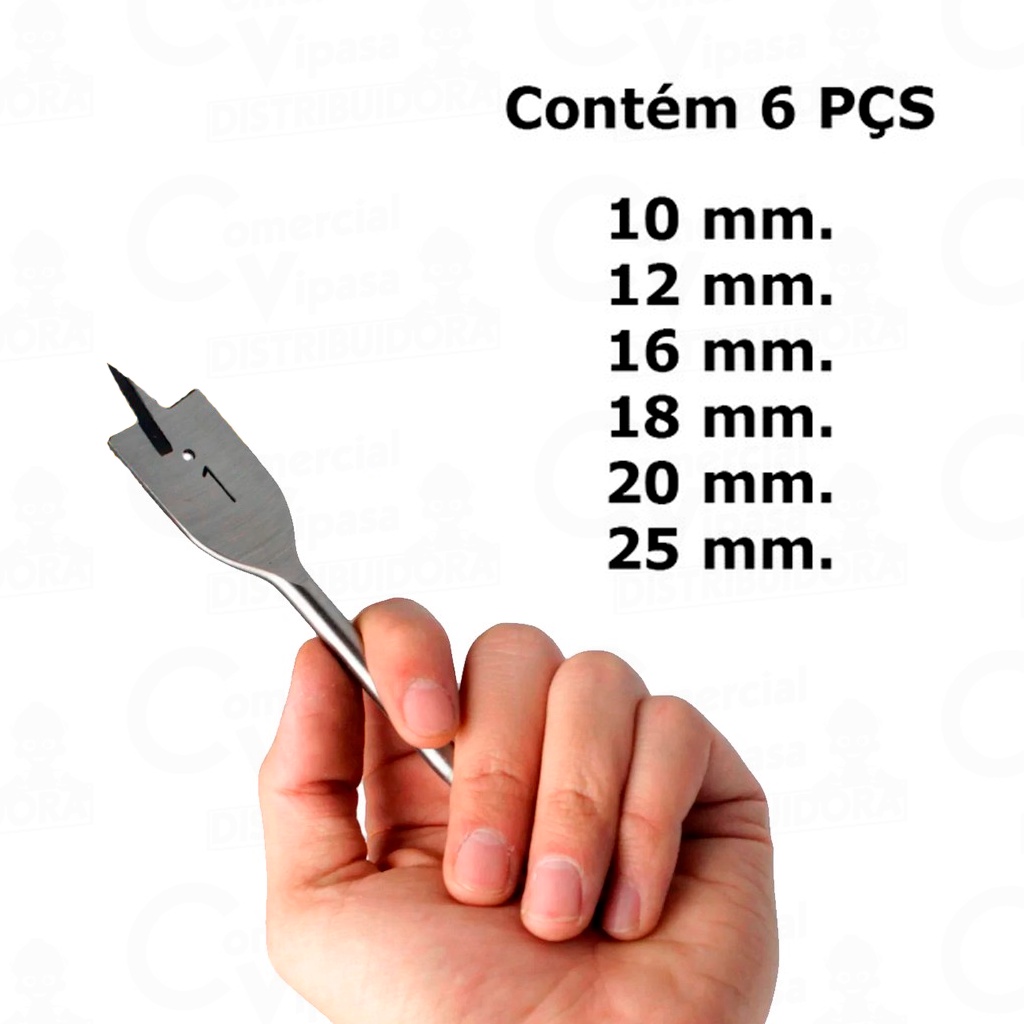 Jogo De Brocas Chatas Para Madeira Plásticos MDF Com Ponta Guia Kit Com 6 Peças