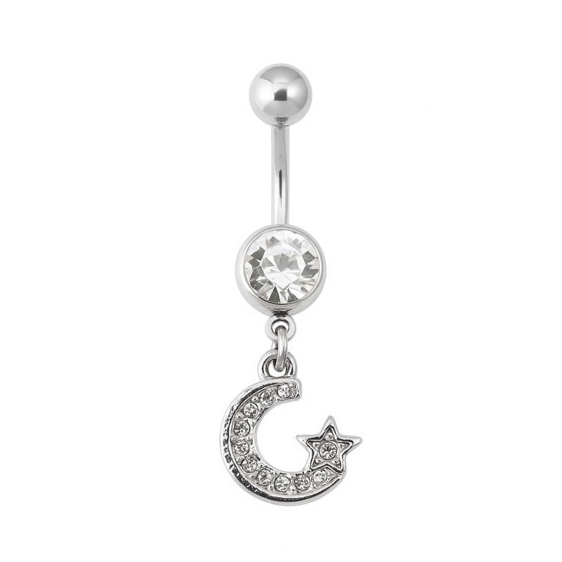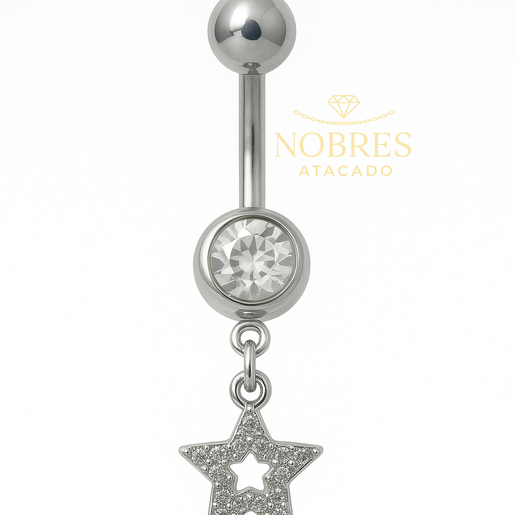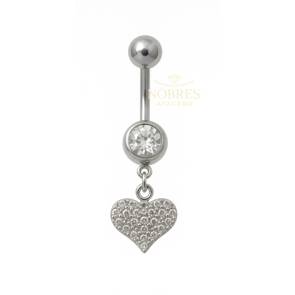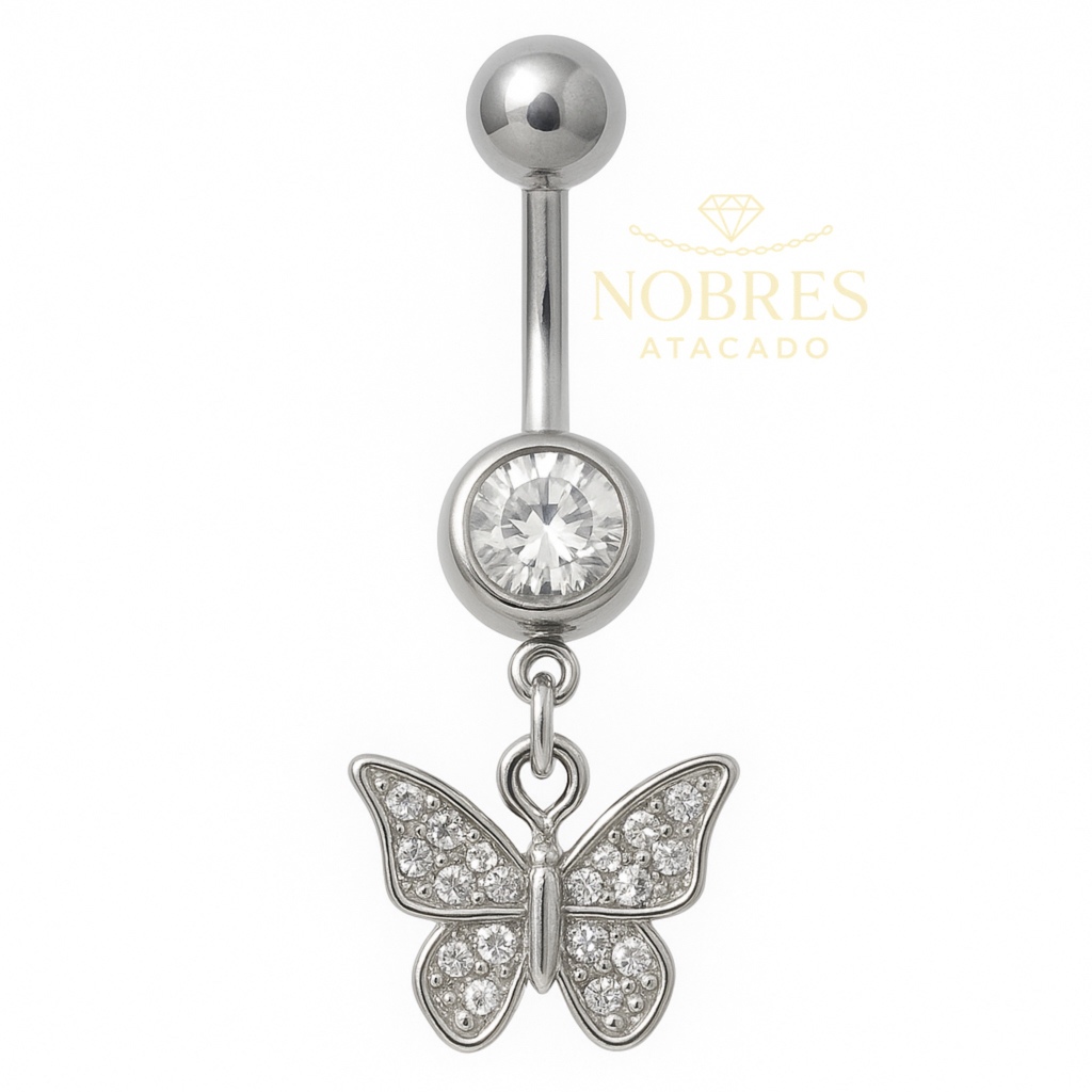 Piercing Umbigo Coração | Estrela | Borboleta Cravejado Prata Aço Cirúrgico 316L Antialérgico Feminino Body Piercing