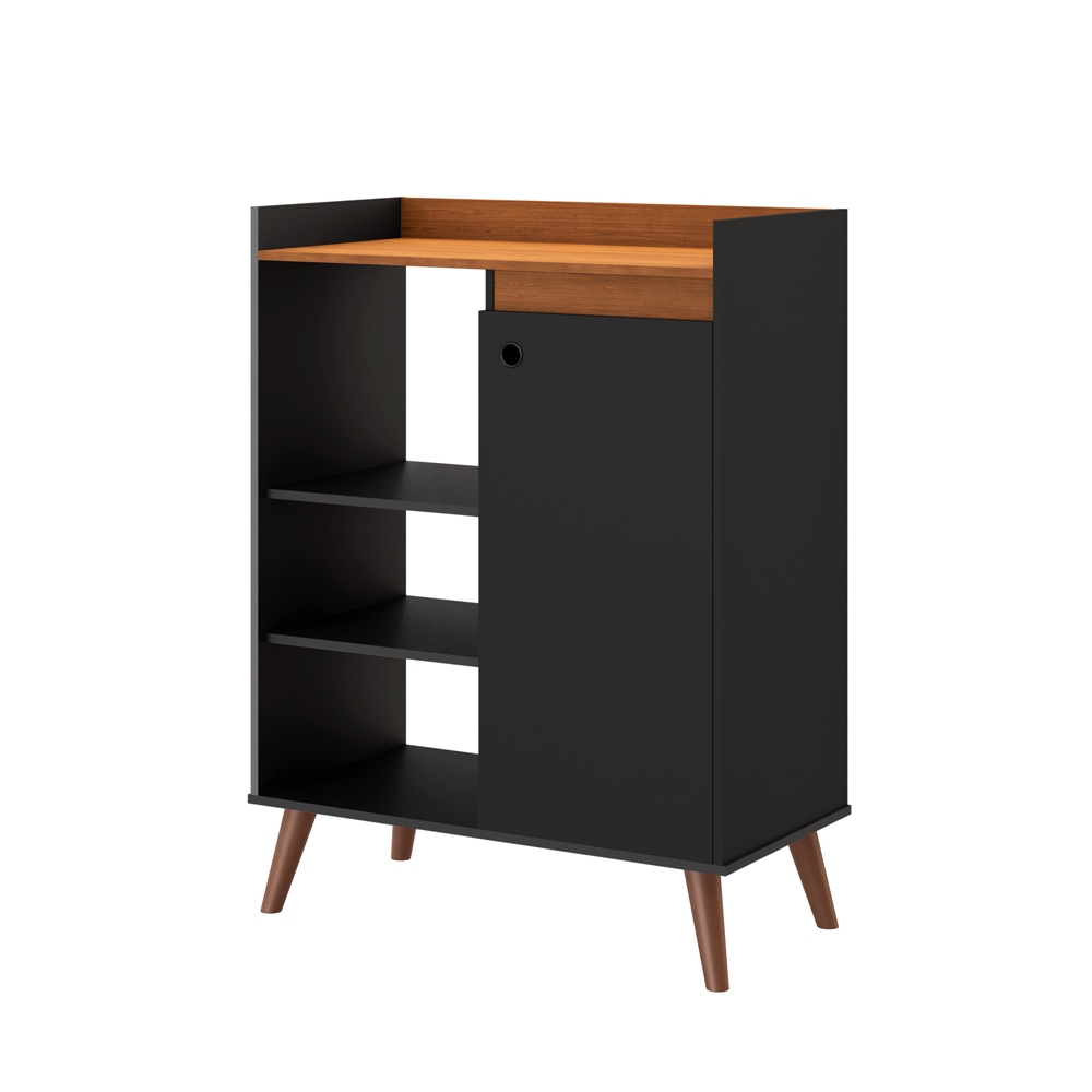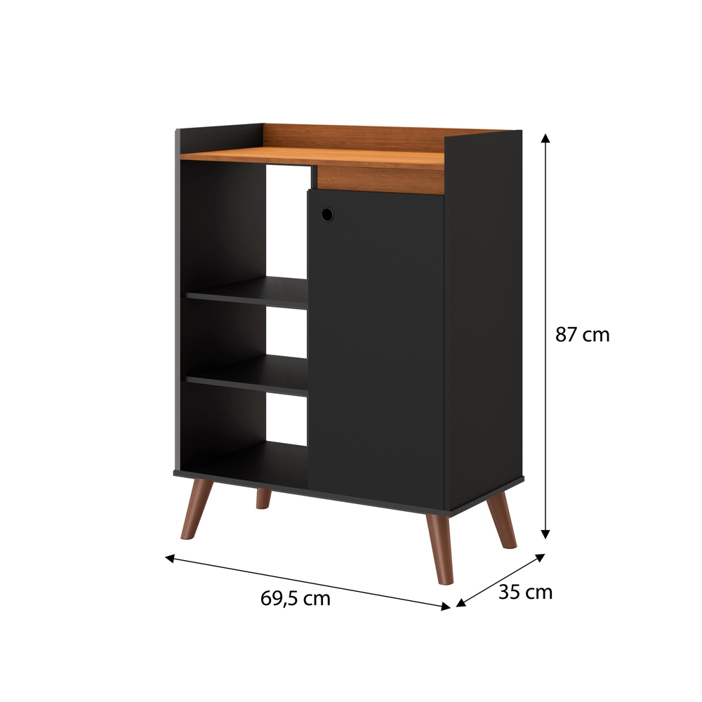 Buffet Miguel Compacto 1 Porta 3 Prateleiras Pés Palito - Aparador Multiuso Sala Cozinha Café Preto