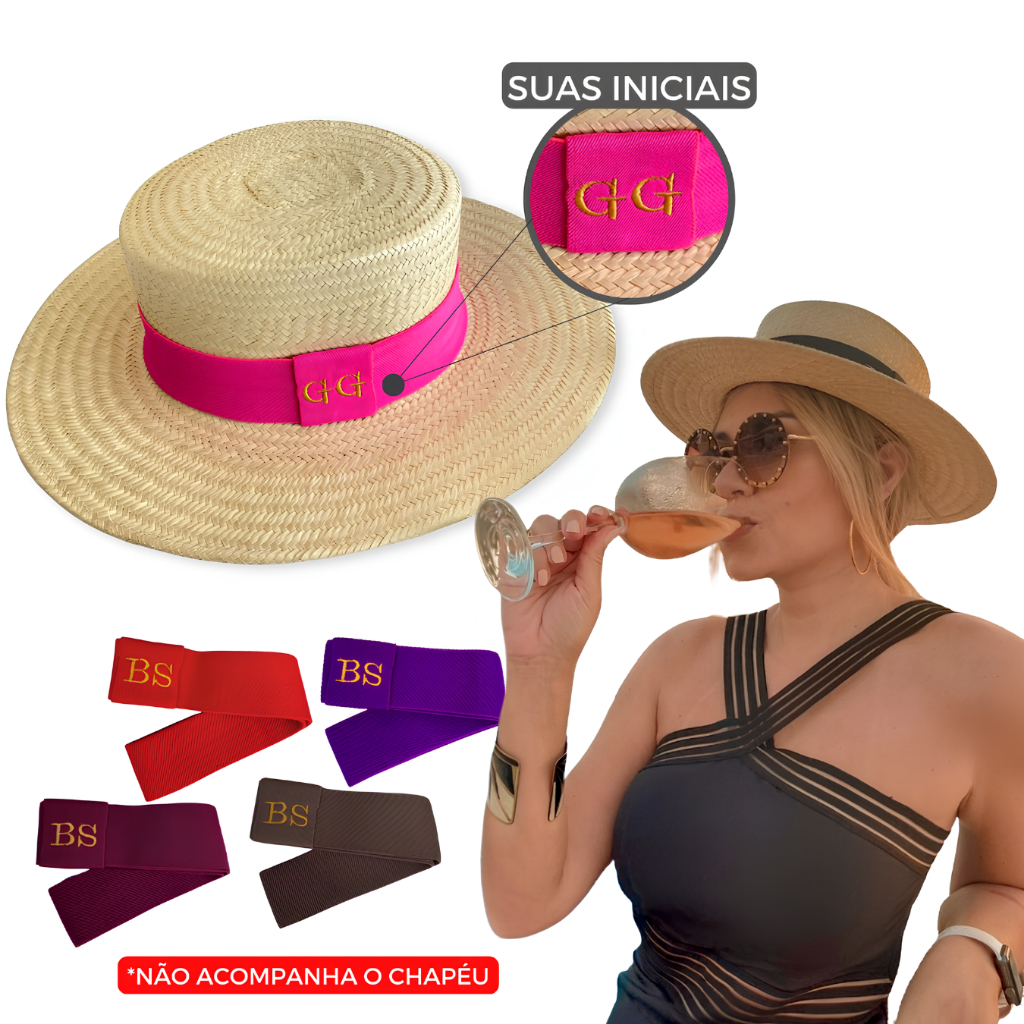 3 Faixas Personalizada Com Sua Inicial Elástico Para Chapéu de Palha Praia Acessórios P/ Chapéus