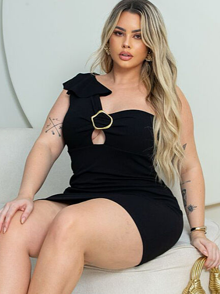 Vestido Plus Size Justo Curto Colado Balada Modelador Vestido Preto Sensual e Casual Moda Look Roupa Plus Size