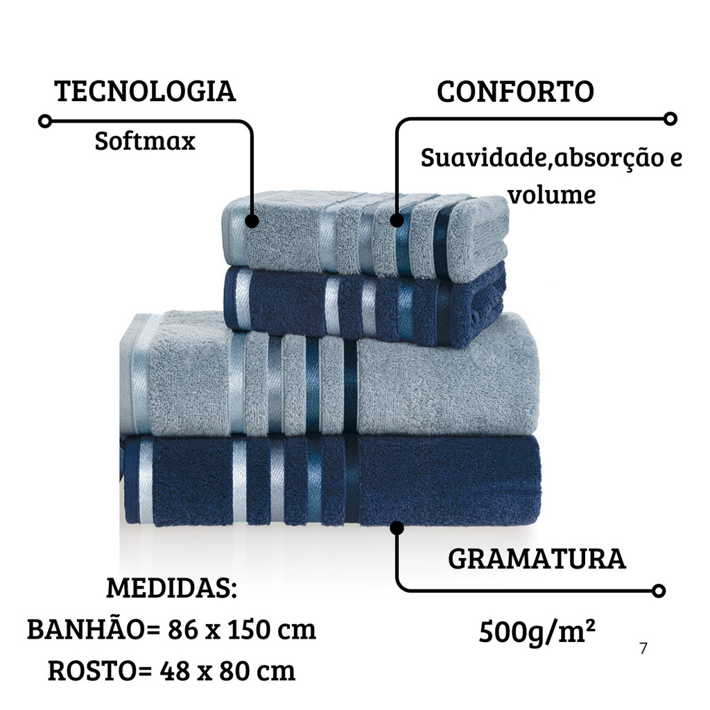 Jogo Toalhas Banhão Gigante 2 Banho 2 Rosto Lumina Karsten 4 peças Fio Penteado 100% Algodão Premium