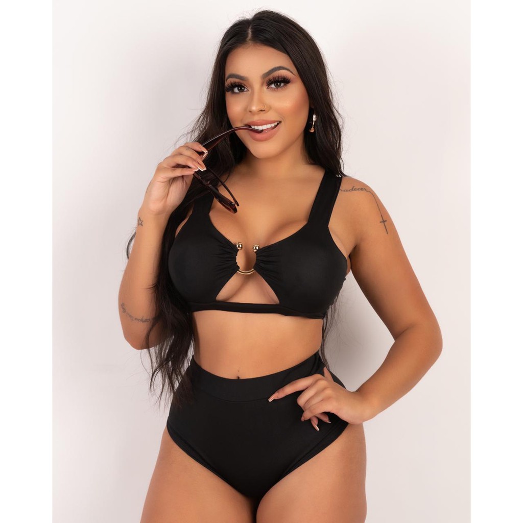 Biquini Cintura Alta Decote Argola Biquíni Hotpants Moda Praia Verão Cropped Top