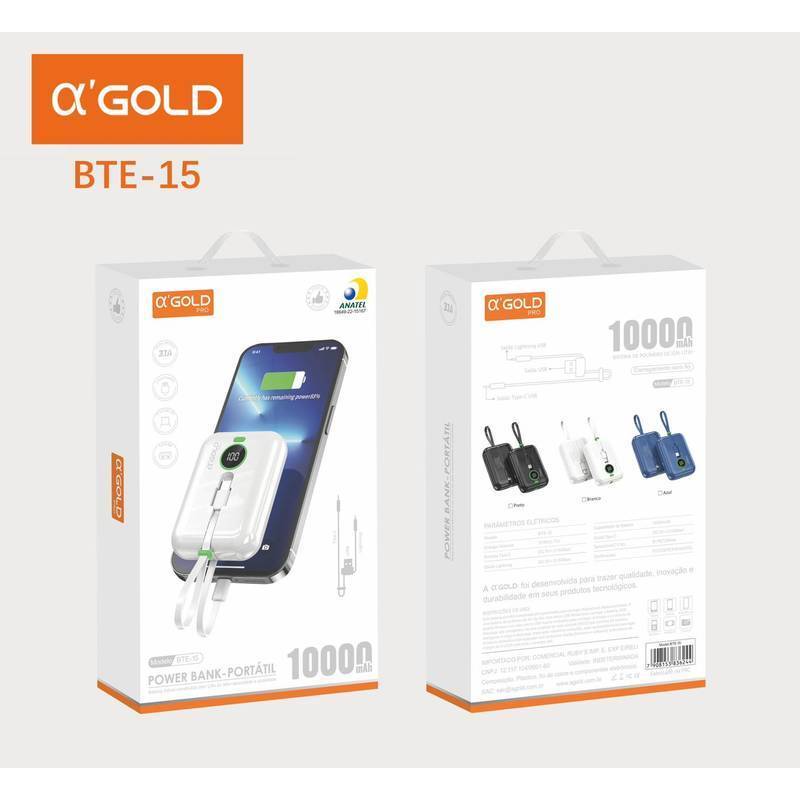 Carregador Bateria Power Bank Com 4 Cabo 10000mah Agold BTE-17 Portatil