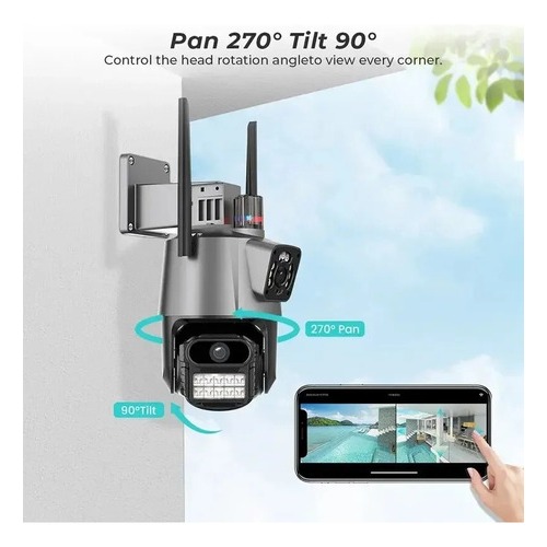 Câmera Ip De Segurança Externa Lente Dupla Com Sirene 3mp Full Hd 4K Wifi Visão Noturna App Icsee