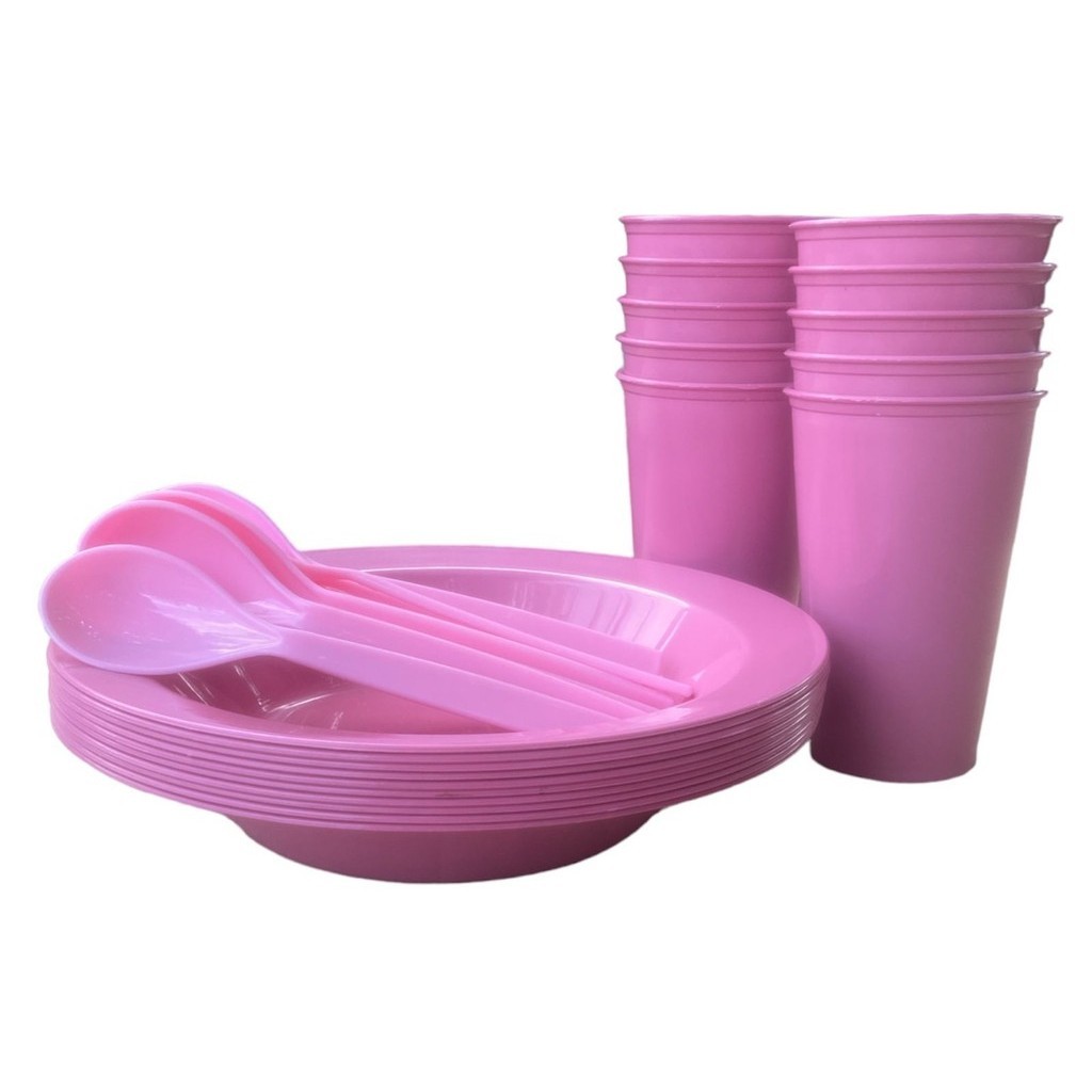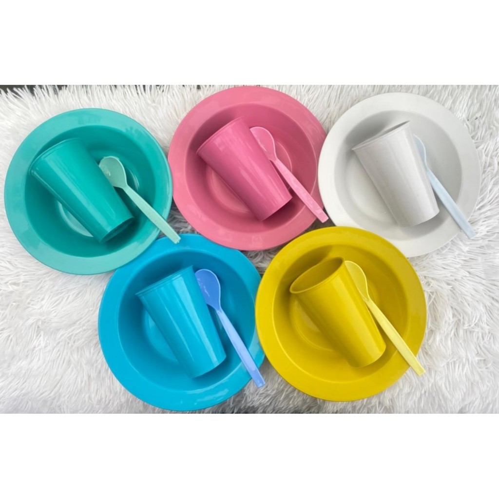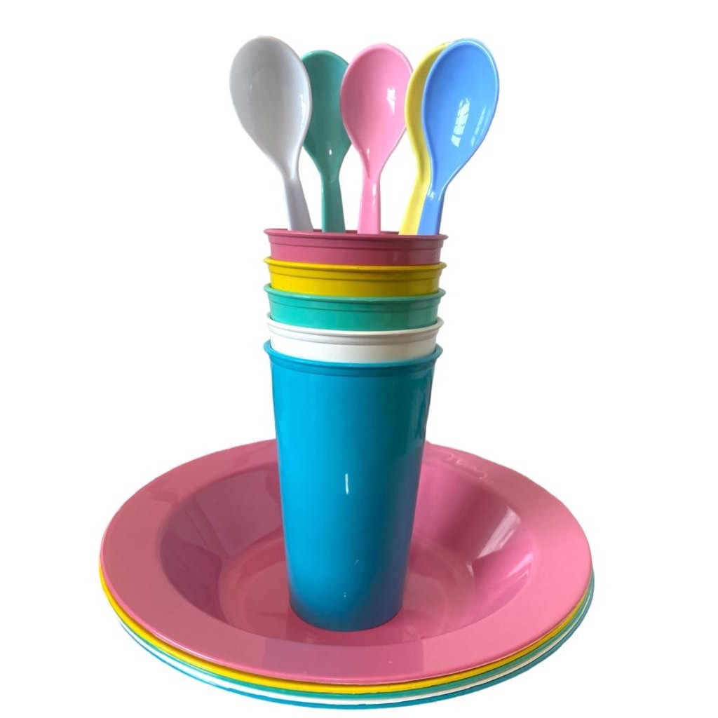 Kit coisa cozinha infantil 5 pratos + 5 copo + 5 colheres borda reforçado promoção microondas color