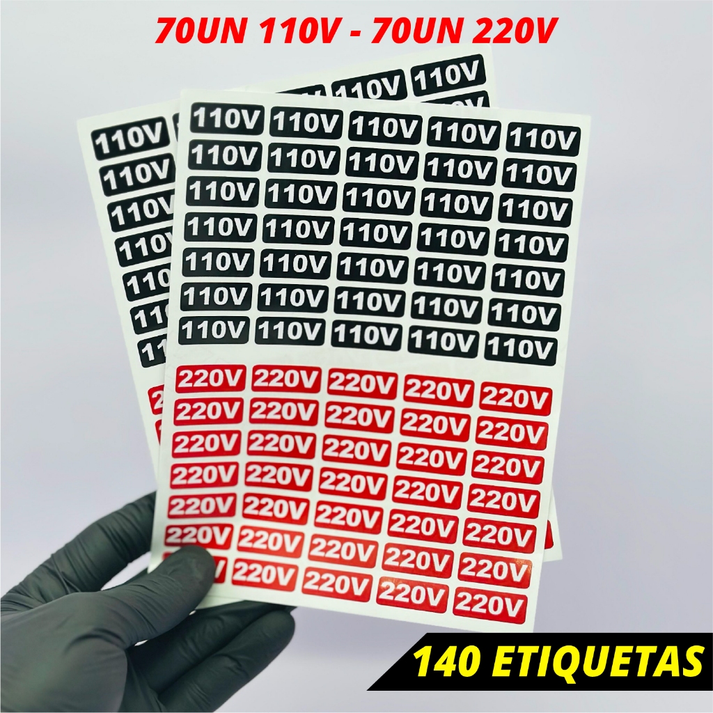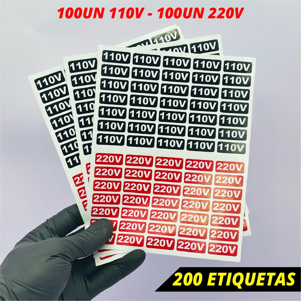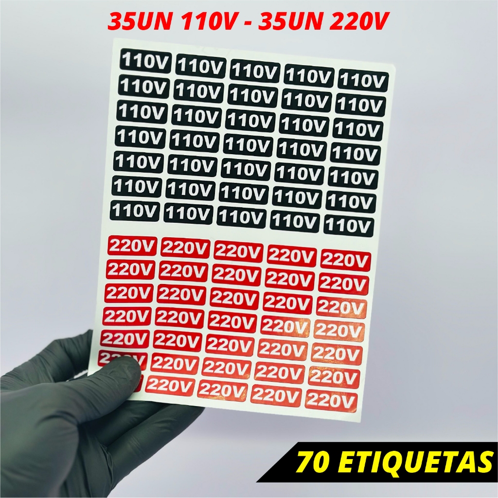 Etiqueta Adesiva Voltagem Tomada 110V 220V – Identificação de Energia Elétrica