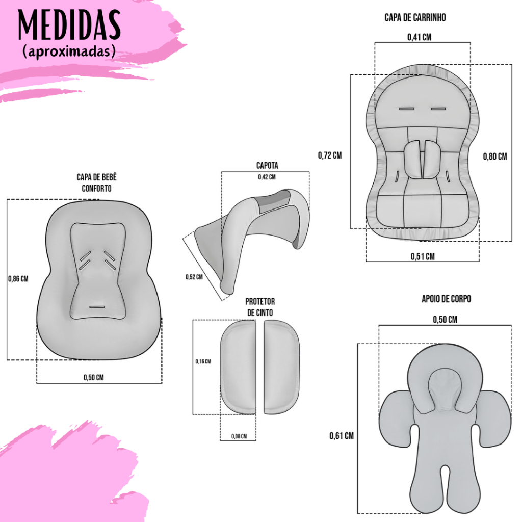 Capa de Carrinho e Bebê Conforto: Capota Solar, Protetores Cinto e Apoio Redutor - 6 Peças