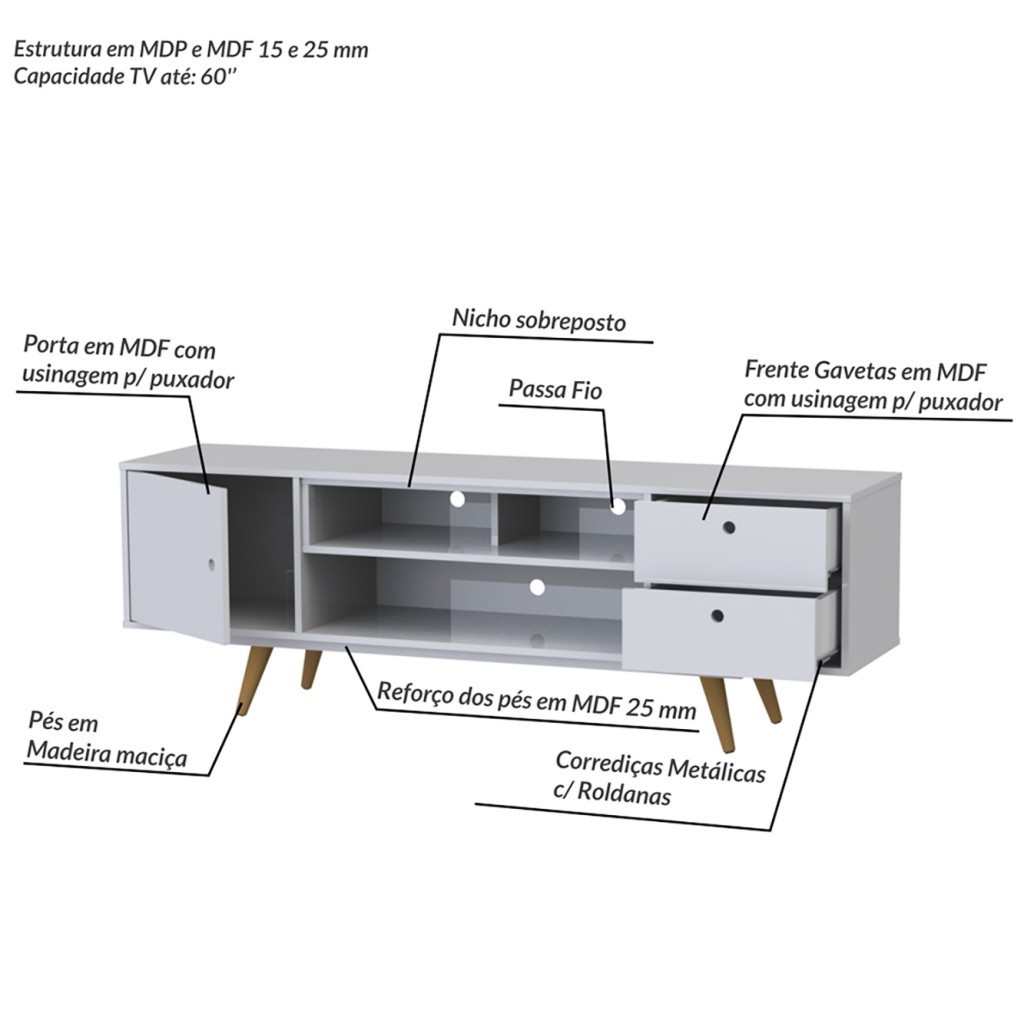 Rack Retro 80 Até 60 Polegadas 1 Porta Branco - Olivar Móveis