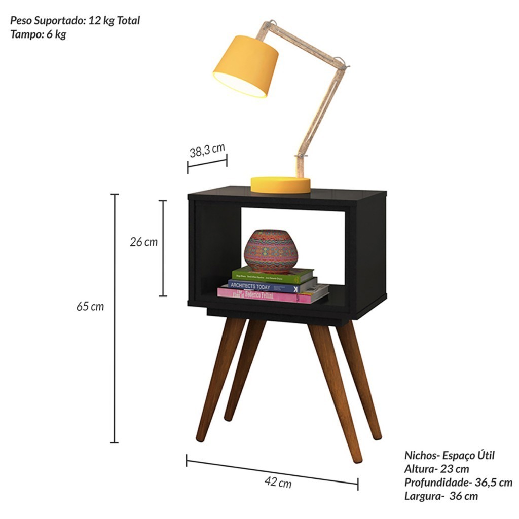 Mesa Lateral Retro 40 1 Nicho Preto - Olivar Móveis