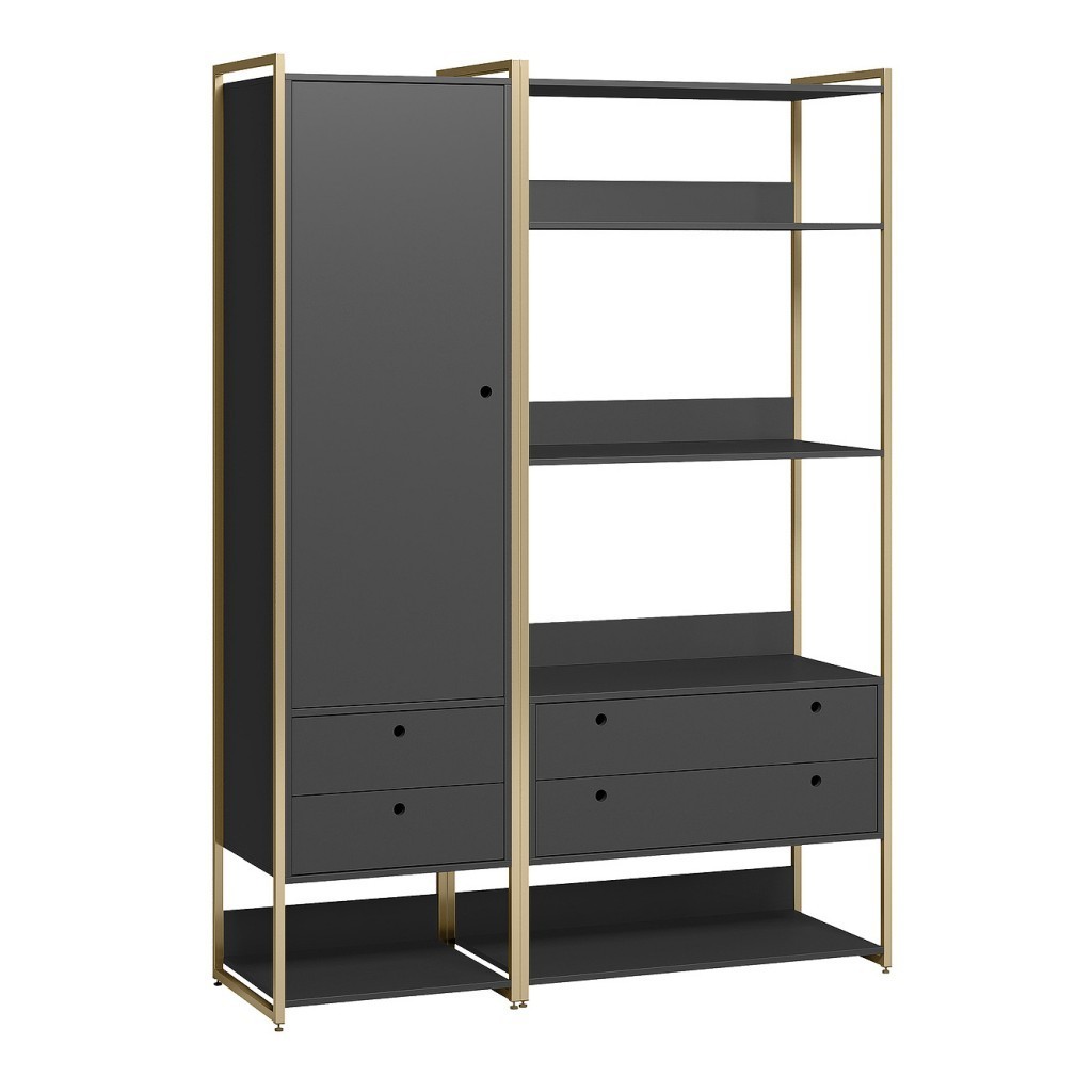 Guarda Roupa Modulado Closet Industrial c/Porta - Gavetas - Estrutura Metálica - Preto - Olivar